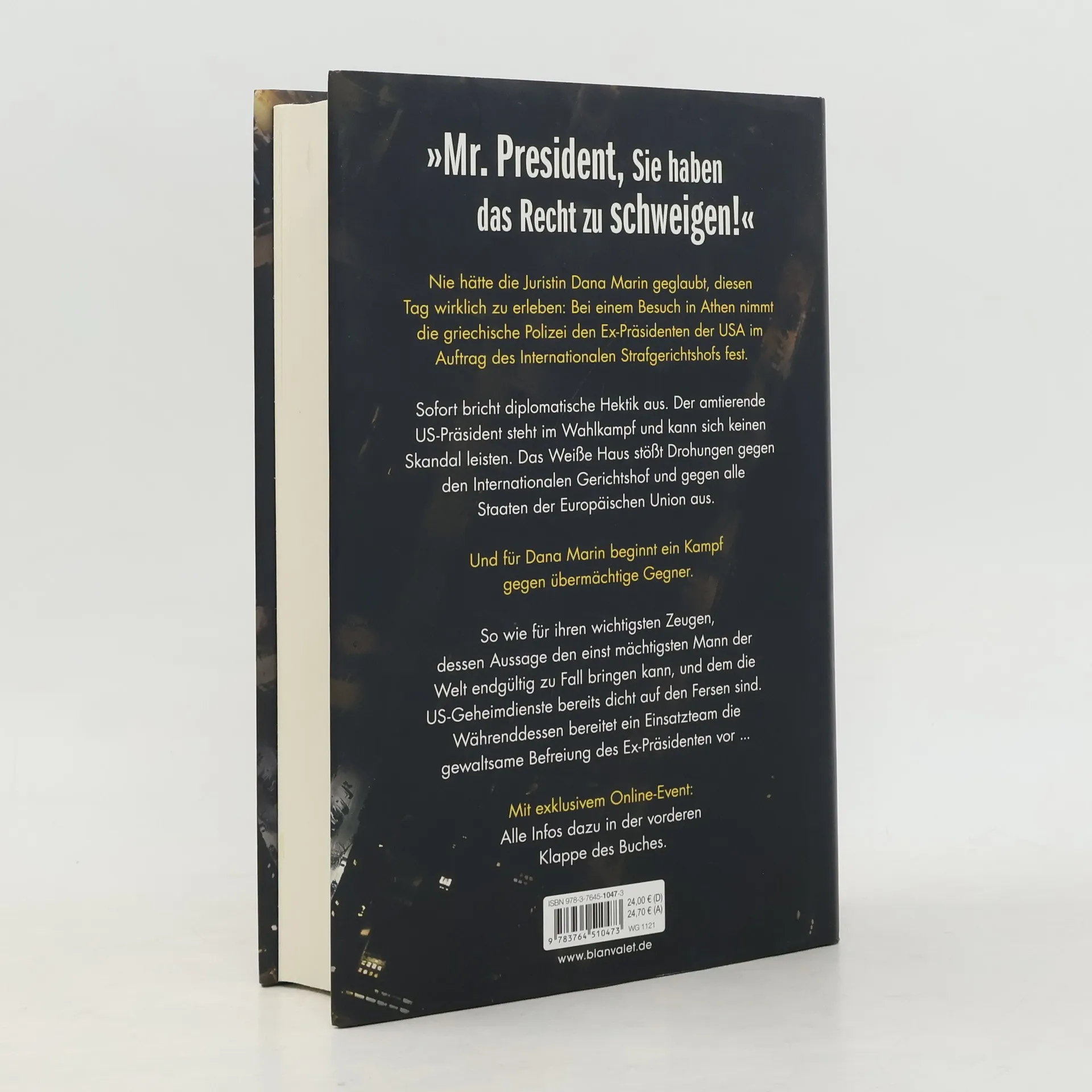 »Mr. President, Sie haben das Recht zu schweigen!« – Wenn Fiktion zur Realität wird – der neue Bestseller von Marc Elsberg! Mit Zugang zum exklusiven Online-Event: Alle Infos dazu im Buch. Nie hätte die Juristin Dana Marin geglaubt, diesen Tag wirklich zu erleben: Bei einem Besuch in Athen nimmt die griechische Polizei den Ex-Präsidenten der USA im Auftrag des Internationalen Strafgerichtshofs fest. Sofort bricht diplomatische Hektik aus. Der amtierende US-Präsident steht im Wahlkampf und kann sich keinen Skandal leisten. Das Weiße Haus stößt Drohungen gegen den Internationalen Gerichtshof und gegen alle Staaten der Europäischen Union aus. Und für Dana Marin beginnt ein Kampf gegen übermächtige Gegner. So wie für ihren wichtigsten Zeugen, dessen Aussage den einst mächtigsten Mann der Welt endgültig zu Fall bringen kann. Die US-Geheimdienste sind dem Whistleblower bereits dicht auf den Fersen. Währenddessen bereitet ein Einsatzteam die gewaltsame Befreiung des Ex-Präsidenten vor, um dessen Überstellung nach Den Haag mit allen Mitteln zu verhindern ... Lesen Sie auch den aktuellen Thriller von Marc Elsberg: °C - Celsius! Ein Klimathriller, der alles auf den Kopf stellt. Außerdem erhältlich: Blackout. Morgen ist es zu spät. Zero. Sie wissen, was du tust. Helix: Sie werden uns ersetzen. Gier. Wie weit würdest du gehen?