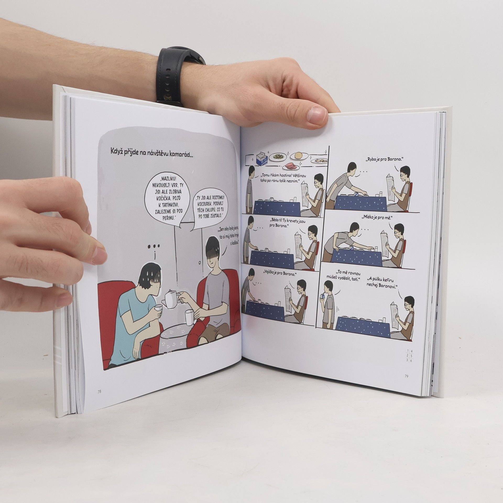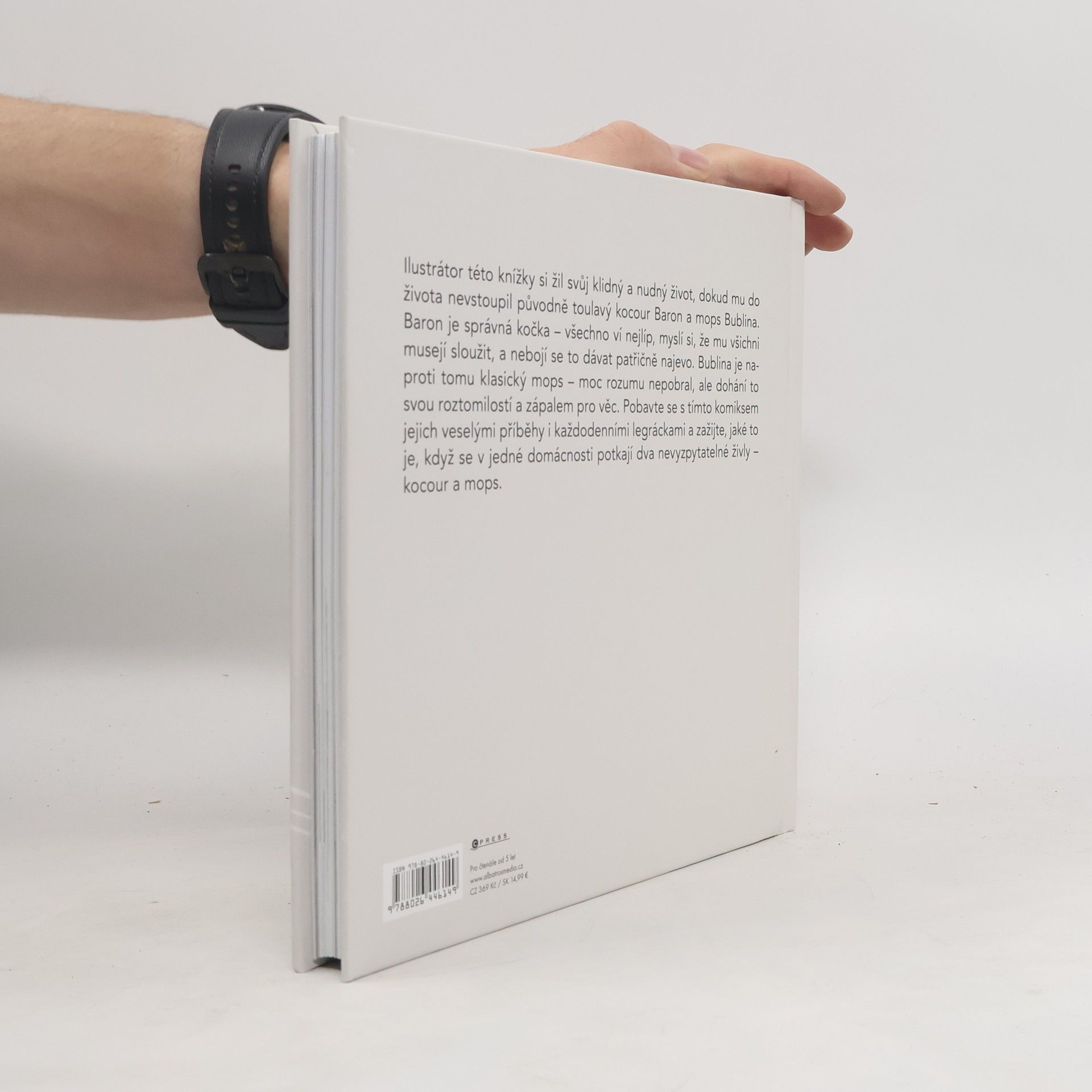 Ilustrátor této knížky si žil svůj klidný a nudný život, dokud mu do života nevstoupil původně toulavý kocour Baron a mops Bublina. Baron je správná kočka - všechno ví nejlíp, myslí si, že mu všichni musejí sloužit, a nebojí se to dávat patřičně najevo. Bublina je naproti tomu klasický mops - moc rozumu nepobral, ale dohání to svou roztomilostí a zápalem pro věc. Pobavte se s tímto komiksem jejich veselými příběhy i každodenními legráckami a zažijte, jaké to je, když se v jedné domácnosti potkají dva nevyzpytatelné živly - kocour a mops.