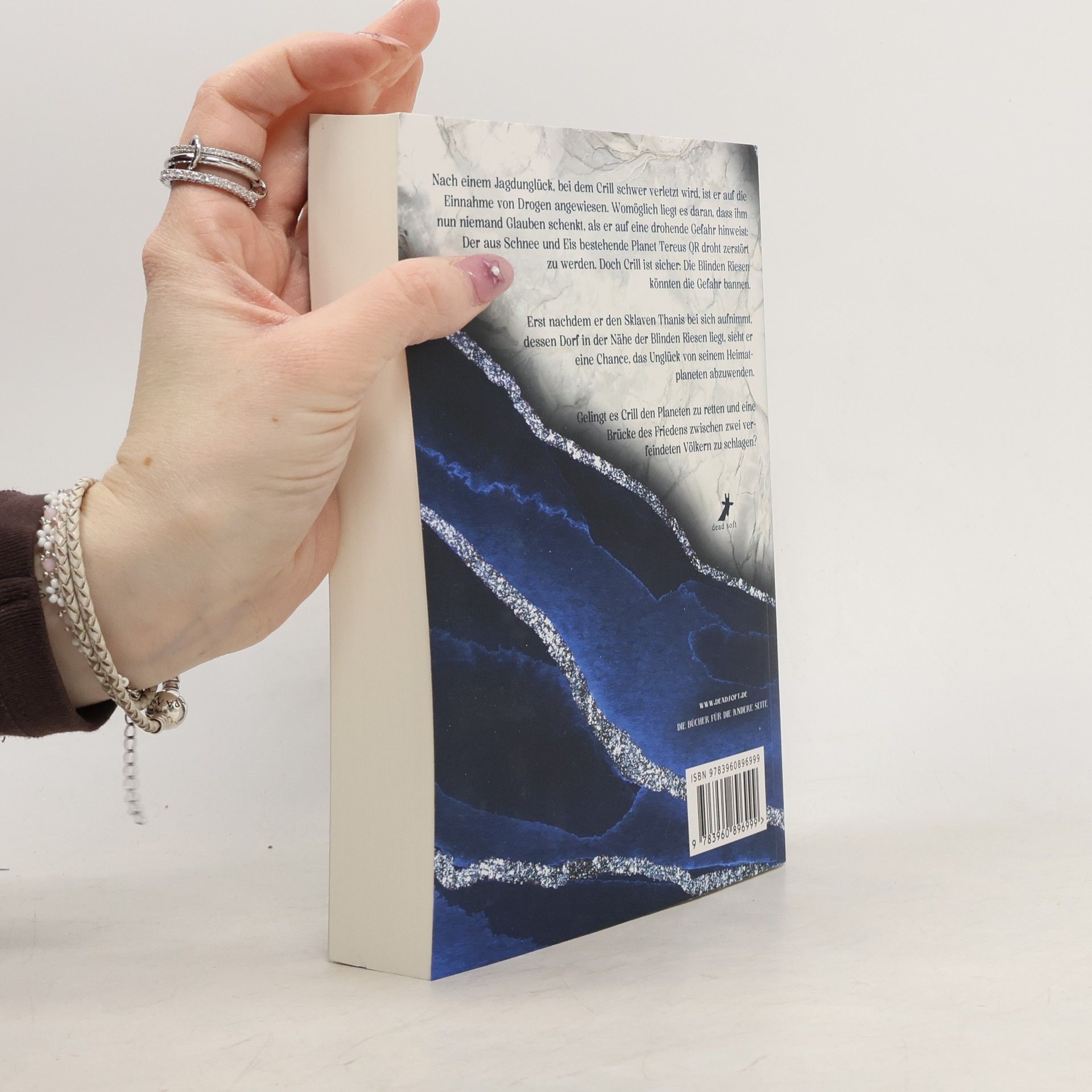 Nach einem Jagdunfall ist Crill auf Drogen angewiesen und wird von seiner Umgebung nicht ernst genommen, als er vor der drohenden Zerstörung des Planeten Tereus QR warnt. Er glaubt, dass die geheimnisvollen Blinden Riesen die Gefahr abwenden können. Die Situation ändert sich, als er den Sklaven Thanis aufnimmt, dessen Dorf in der Nähe der Riesen liegt. Gemeinsam versuchen sie, Crills Heimat zu retten und eine friedliche Verbindung zwischen zwei verfeindeten Völkern herzustellen. Die Geschichte thematisiert Mut, Vertrauen und die Suche nach Frieden.