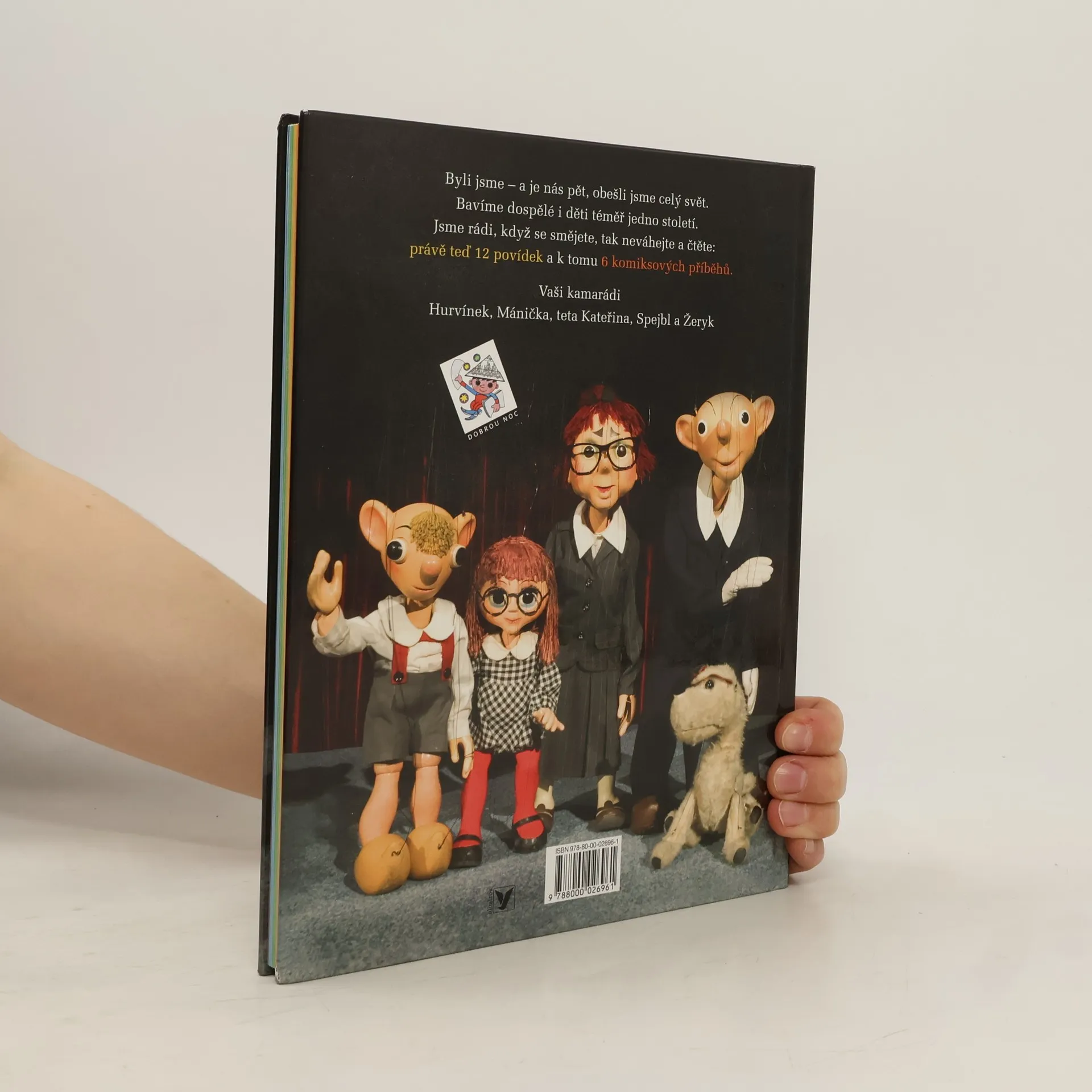 Byli jsme - a je nás pět, obešli jsme celý svět. Bavíme dospělé i děti téměř jedno století. Jsme rádi, když se smějete, tak naváhejte a čtěte: právě teď 12 povídek a k tomu 6 komiksových příběhů. Vaši kamarádi Hurvínek, Mánička, teta Kateřina, Spejbl a Žeryk