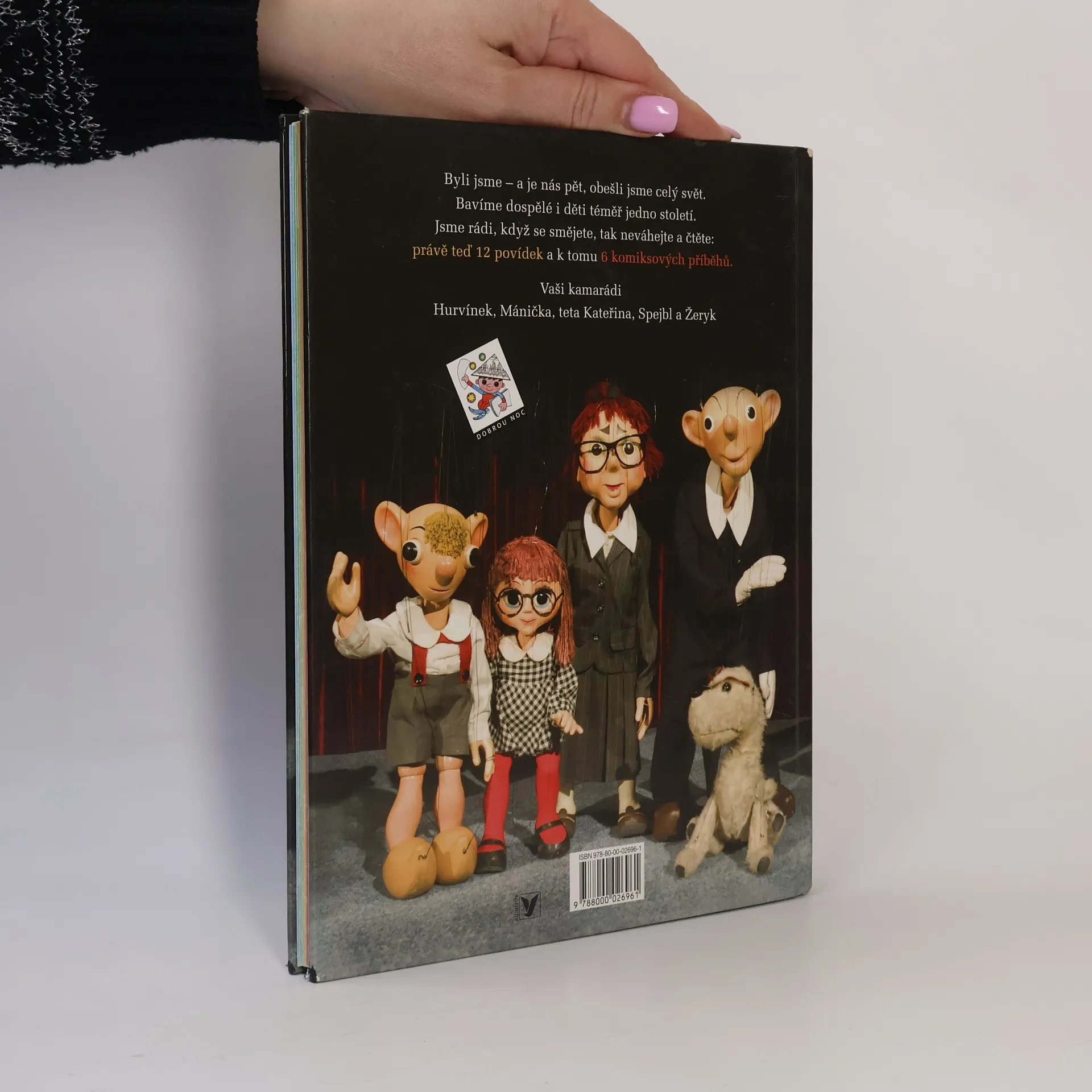 Byli jsme - a je nás pět, obešli jsme celý svět. Bavíme dospělé i děti téměř jedno století. Jsme rádi, když se smějete, tak naváhejte a čtěte: právě teď 12 povídek a k tomu 6 komiksových příběhů. Vaši kamarádi Hurvínek, Mánička, teta Kateřina, Spejbl a Žeryk