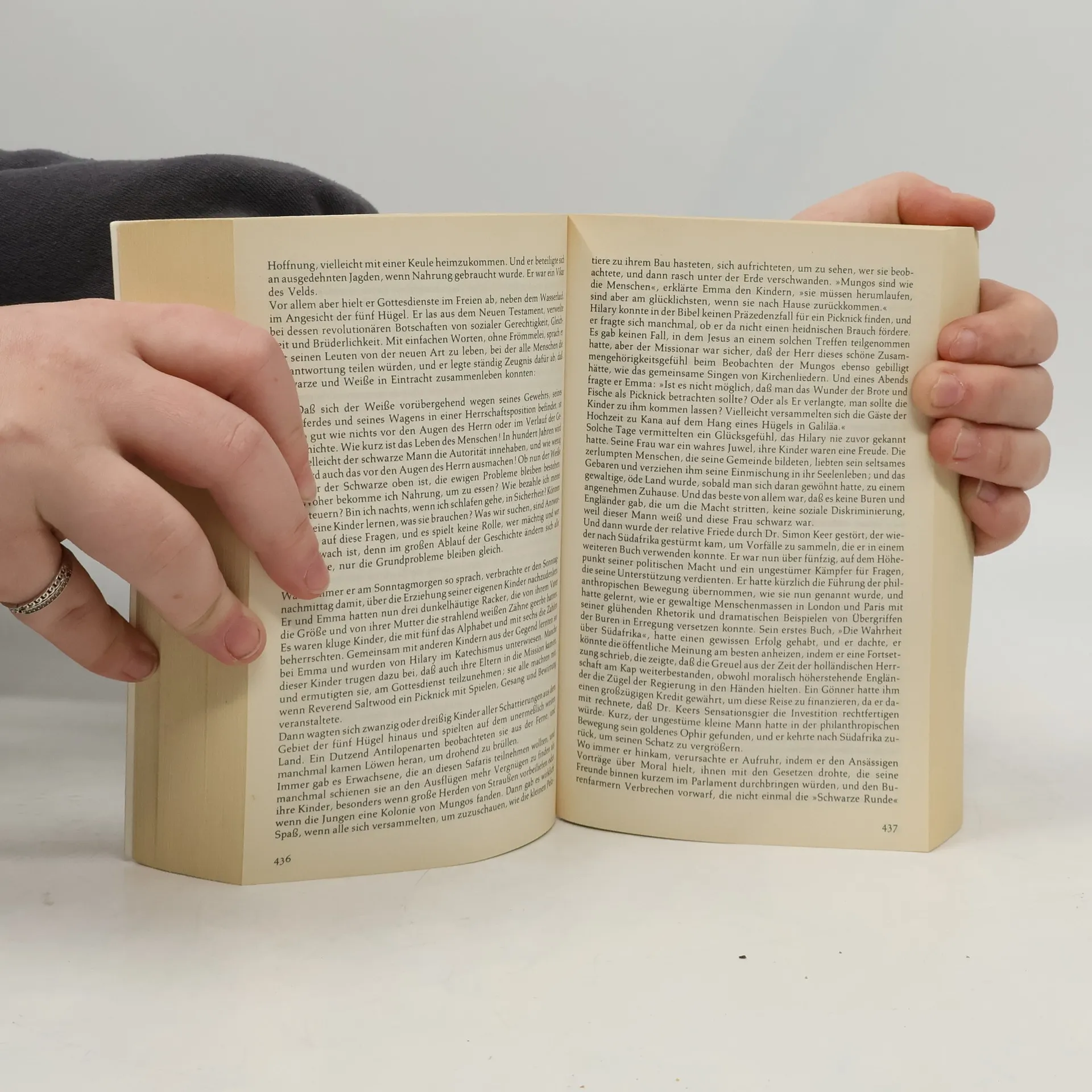 Hier geht es um die atemberaubende Landschaft Südafrikas, die den Hintergrund für das fesselnde Geschehen dieses Romans bildet. Wir begegnen den ersten Kauffahrern aus Portugal und Holland, Siedlern aus Deutschland und England, Hugenotten und Reformierten, Händlern aus Indien, Hottentotten und Buschmännern. Es wird von Goldbergwerken der sagenumworbenen Stadt Zimbabwe, vom einträglichen Handel mit Gewürzen und Sklaven, vom "großen Treck", den Burenkriegen und grausamen Folgen einer schändlichen Rassenpolitik. So verweben sich vor dem Auge des Lesers dieverschiedenen Stränge der Handlung zu einem gigantischen Panorama dieses zugleich faszinierenden und furchtgebietenden Landes und seiner Menschen.