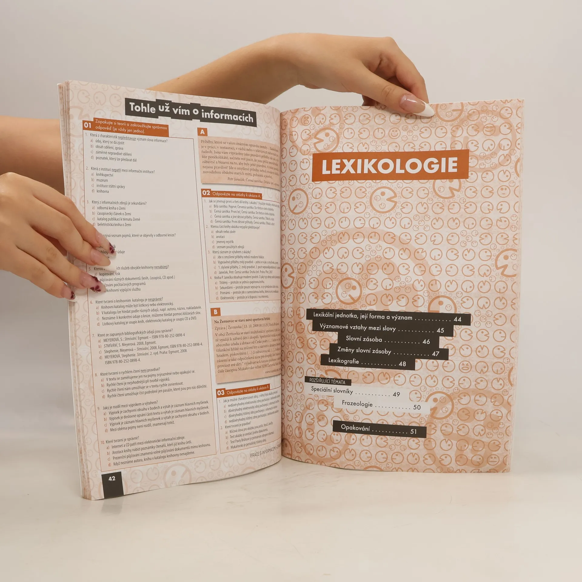 Pracovní sešit prověřuje znalosti a rozvíjí dovednosti v návaznosti na učebnici. Významně také napomáhá rozvoji klíčových kompetencí a důležitých dovedností studentů. Struktura pracovního sešitu kopíruje strukturu učebnice – jsou zde stejné tematické celky a kapitoly. Kapitola v učebnici a kapitola v pracovním sešitě přitom představuje pestrý a bohatý materiál pro vyučovací hodinu i domácí přípravu studentů. Počet úkolů je navíc lehce naddimenzovaný, takže je vždy možné vybírat úkoly vhodné pro konkrétní třídu, přizpůsobit se jejímu tempu a její úrovni. Každá kapitola obsahuje několik bloků úkolů, z nichž velká část vychází z ukázky autentického materiálu ve formě písemné, zvukové či obrazové. Úkoly jsou zaměřeny na analýzu i aplikaci a neustále nutí studenty k přemýšlení a hledání souvislostí. Jsou zde rovnoměrně zastoupeny úkoly určené pro jednotlivce, dvojice a skupiny. Kromě bloků zaměřených na aktuální látku kapitoly (s výjimkou komunikačních) obsahují také tři bloky