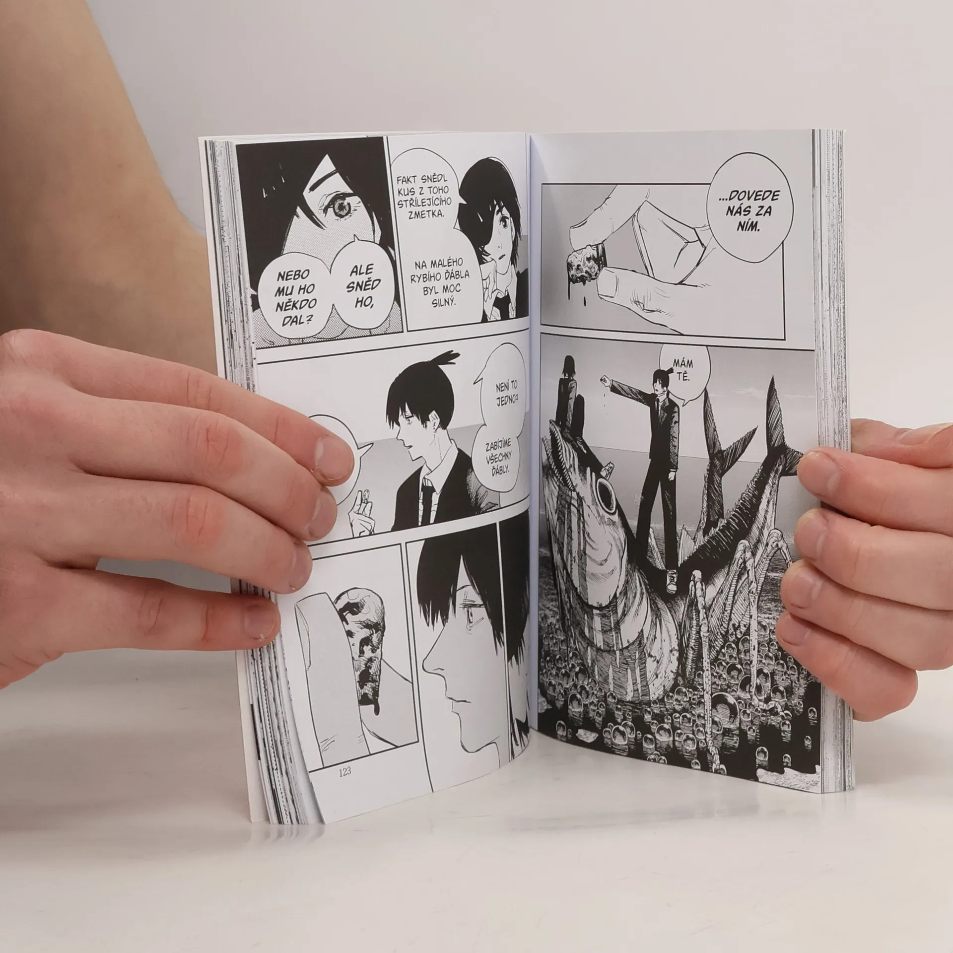 „Chci šáhnout Makimě na prsa!“Dendži, poháněn touto nepřekonatelnou touhou, vyráží do divoké bitvy s netopýřím ďáblem! Dostane se mu na konci boje opravdu vytoužené odměny? A co nám Makima prozradí o nepříteli lidstva, Střeleckém ďáblovi? Dendžiho bitva ve jménu veřejné bezpečnosti vstupuje do nové fáze!