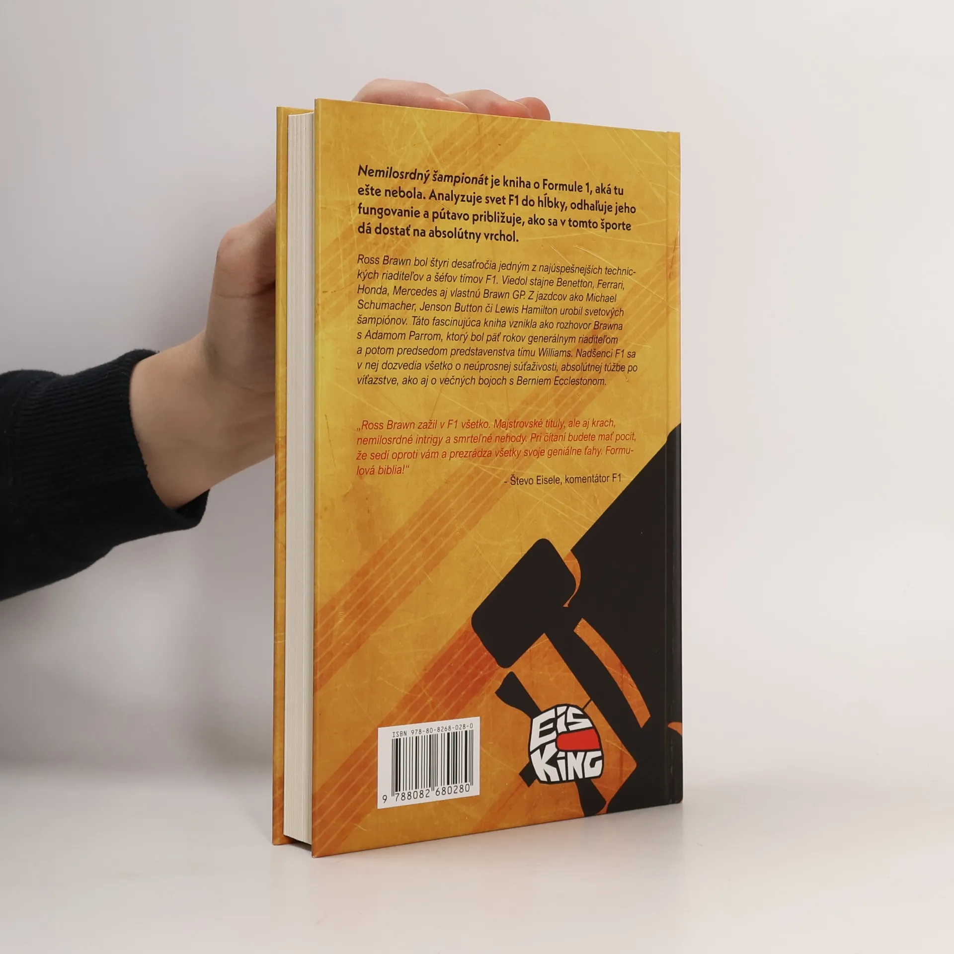 Nemilosrdný šampionát je kniha o Formule 1, aká tu ešte nebola. Analyzuje svet F1 do hĺbky, odhaľuje jeho fungovanie a pútavo približuje, ako sa v tomto športe dá dostať na absolútny vrchol.Ross Brawn bol štyri desaťročia jedným z najúspešnejších technických riaditeľov a šéfov tímov F1. Viedol stajne Benetton, Ferrari, Honda, Mercedes aj vlastnú Brawn GP. Z jazdcov ako Michael Schumacher, Jenson Button či Lewis Hamilton urobil svetových šampiónov. Táto fascinujúca kniha vznikla ako rozhovor Brawna s Adamom Parrom, ktorý bol päť rokov generálnym riaditeľom a potom predsedom predstavenstva tímu Williams. Nadšenci F1 sa vnej dozvedia všetko o neúprosnej súťaživosti, absolútnej túžbe po víťazstve, ako aj o večných bojoch s Berniem Ecclestonom.