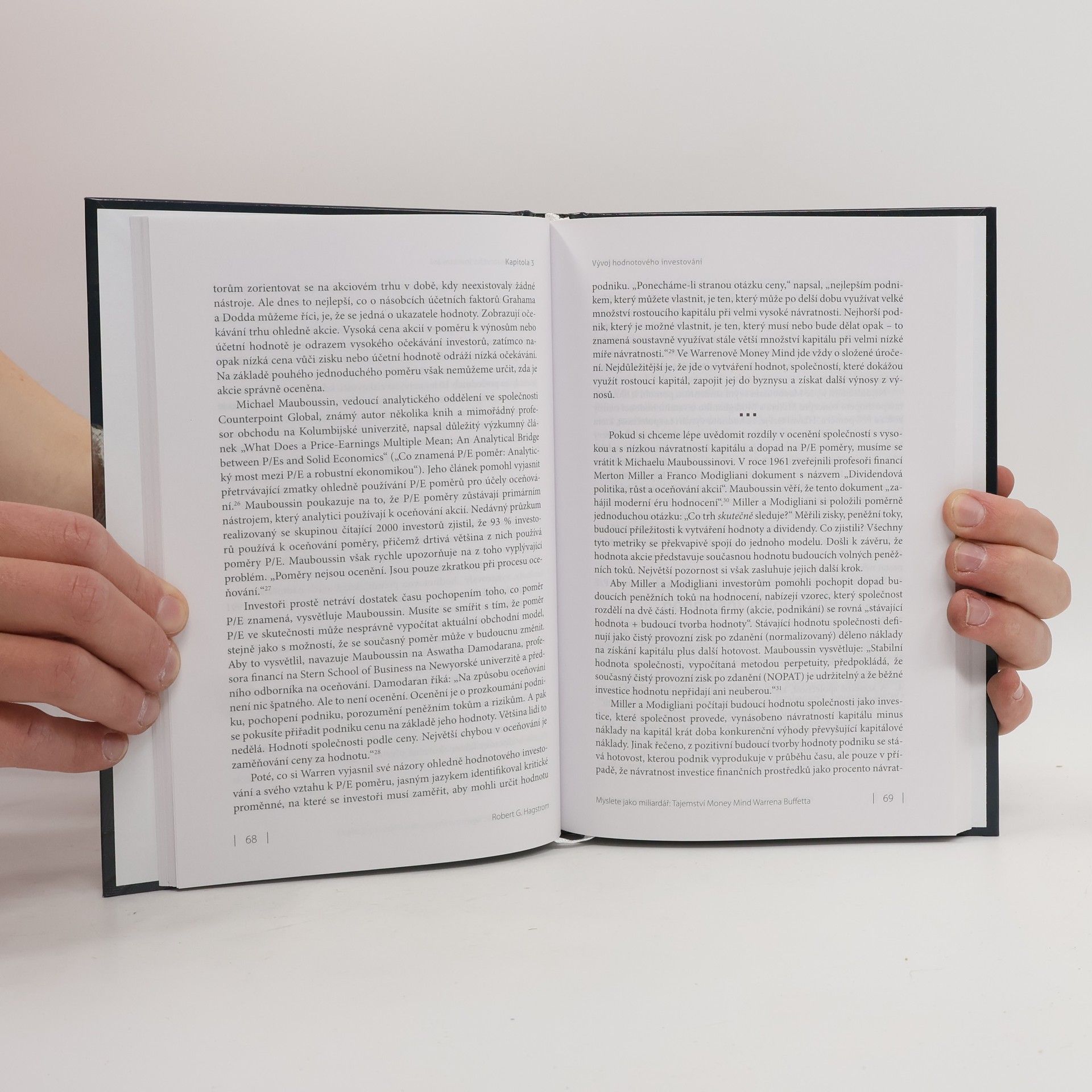 O tom, jak přemýšlíme, jak se na investice díváme. Je to něco, co sám Buffett nazval Money Mind. V knize Myslete jako miliardář: Tajemství money mind Warrena Buffetta autor bestsellerů Robert Hagstrom analyzuje Buffettovu zásadní moudrost, která je složitou spletí rozsáhlých myšlenek. Hagstrom, úspěšný investor a autor knih s pronikavými analýzami Buffettových investičních metod, kterých se prodalo přes 1 milion výtisků, se nyní zabývá mnohem zásadnější otázkou: Co tyto metody formovalo? Money Mind je na jedné úrovni to způsob uvažování o hlavních finančních otázkách, jako je alokace kapitálu. Na další úrovni shrnuje celkové myšlení pro úspěšné investování na dnešním akciovém trhu, myšlení, které závisí na odhodlání učit se, přizpůsobovat se a čelit nepodstatnému tržnímu šumu. Na ještě hlubší úrovni nám vypovídá mnohé o člověku, kterého nazýváme Money Mind, tedy o člověku, který bude s velkou pravděpodobností úspěšný v mnoha oblastech života – včetně investování. Toto není kniha o metodách. Je to kniha o myšlení. Kniha Myslete jako miliardář: Tajemství money mind Warrena Buffetta vysvětluje filozofii sebedůvěry, stoicismu, racionalismu a pragmatismu a jejich přínos pro inteligentní investiční rozhodování. Rovněž nastiňuje vývoj hodnotového investování, pojednává o tom, jak rozvíjet investiční myšlení založené na podnikání, a popisuje charakteristické rysy úspěšného aktivního řízení.