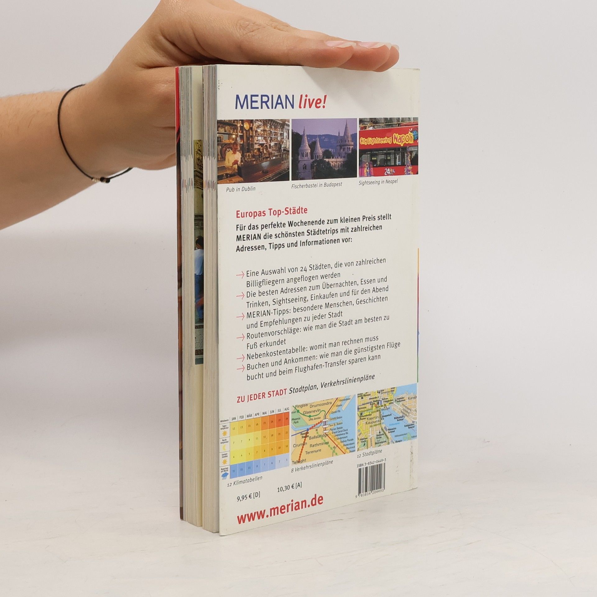 Was sind die Sehenswürdigkeiten von Madrid, wo geht man in Kopgenhagen aus, wo kann man in Wien ausgezeichnet shoppen? Für das perfekte Wochenende zum kleinen Preis stellt MERIAN die 24 schönsten Städtetrips vor. Sie möchten in das aufregende Pariser Nachtleben eintauchen? In einem der angesagtesten Clubs Barcelonas einen Drink zu sich nehmen? Oder das Budapester Frühlingsfestival miterleben, das Künstler aus aller Welt anzieht? In jeder Stadt gibt es Orte und Lokalitäten, die es besonders zu besichtigen lohnt - Museen, Theater, Geschäfte. Die wichtigsten Sehenswürdigkeiten, die besten Adressen und vor allem - was wann geöffnet hat und wie man dort hinkommt -, verrät MERIAN live! „Europas Top-Städte“. Die bewährten MERIAN-Tipps zeigen auf einen Blick, was man auf keinen Fall verpassen sollte. 256 Seiten, über 180 Farbfotos, 24 Stadtpläne, 24 Verkehrslinienpläne, Sprachführer und Essdolmetscher.