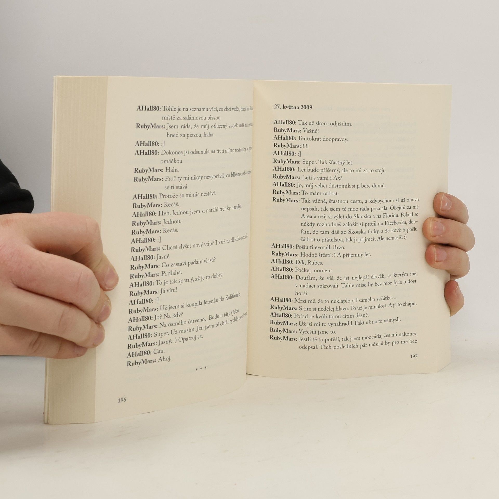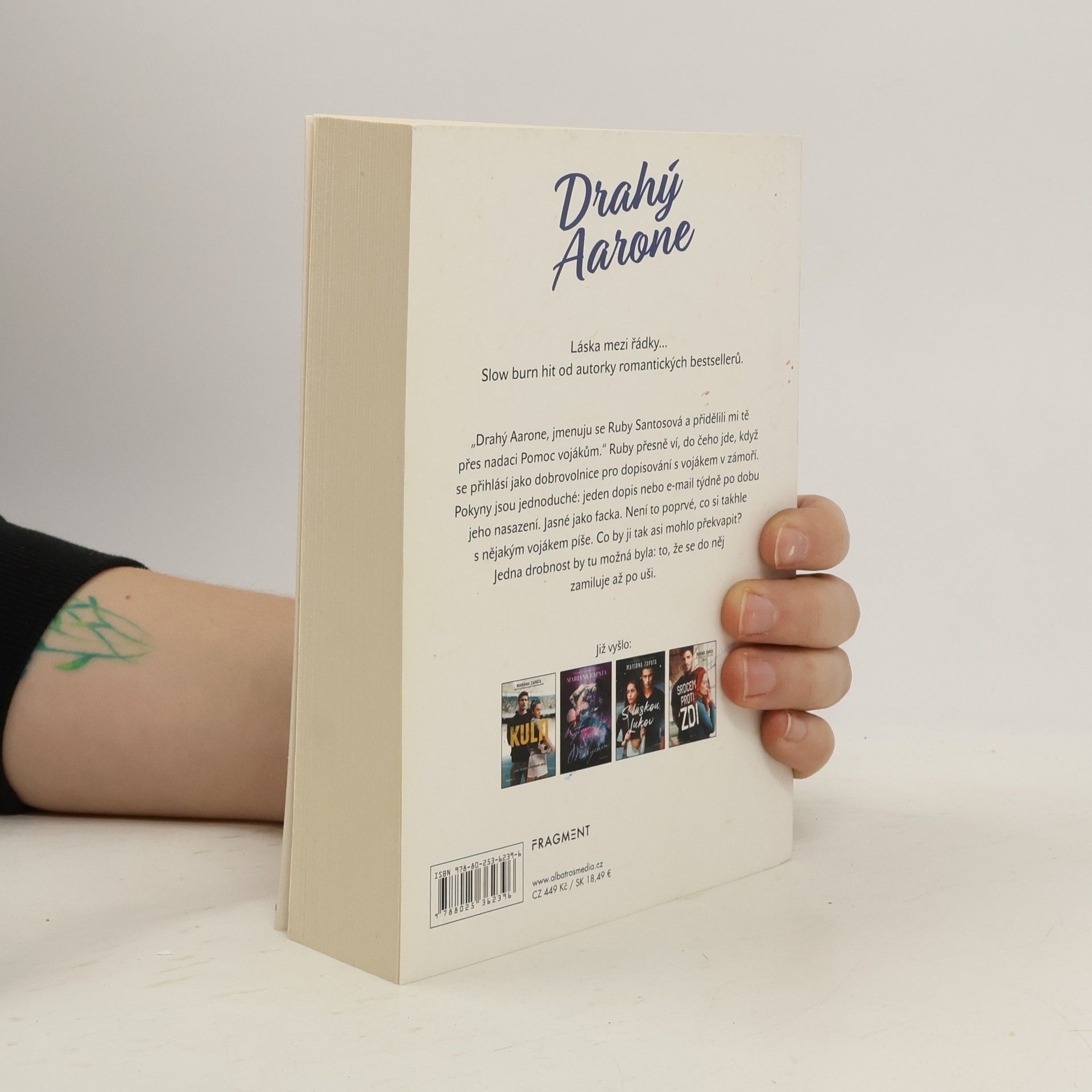 Román americké autorky je zčásti psaný formou e-mailů a krátkých textových zpráv. „Drahý Aarone, jmenuju se Ruby Santosová a přidělili mi tě přes nadaci Pomoc vojákům.“ Ruby přesně ví, do čeho jde, když se přihlásí jako dobrovolnice pro dopisování s vojákem v zámoří. Pokyny jsou jednoduché: jeden dopis nebo e-mail týdně po dobu jeho nasazení. Jasné jako facka. Není to poprvé, co si takhle s nějakým vojákem píše. Co by ji tak asi mohlo překvapit? Jedna drobnost by tu možná byla: to, že se do něj zamiluje až po uši.