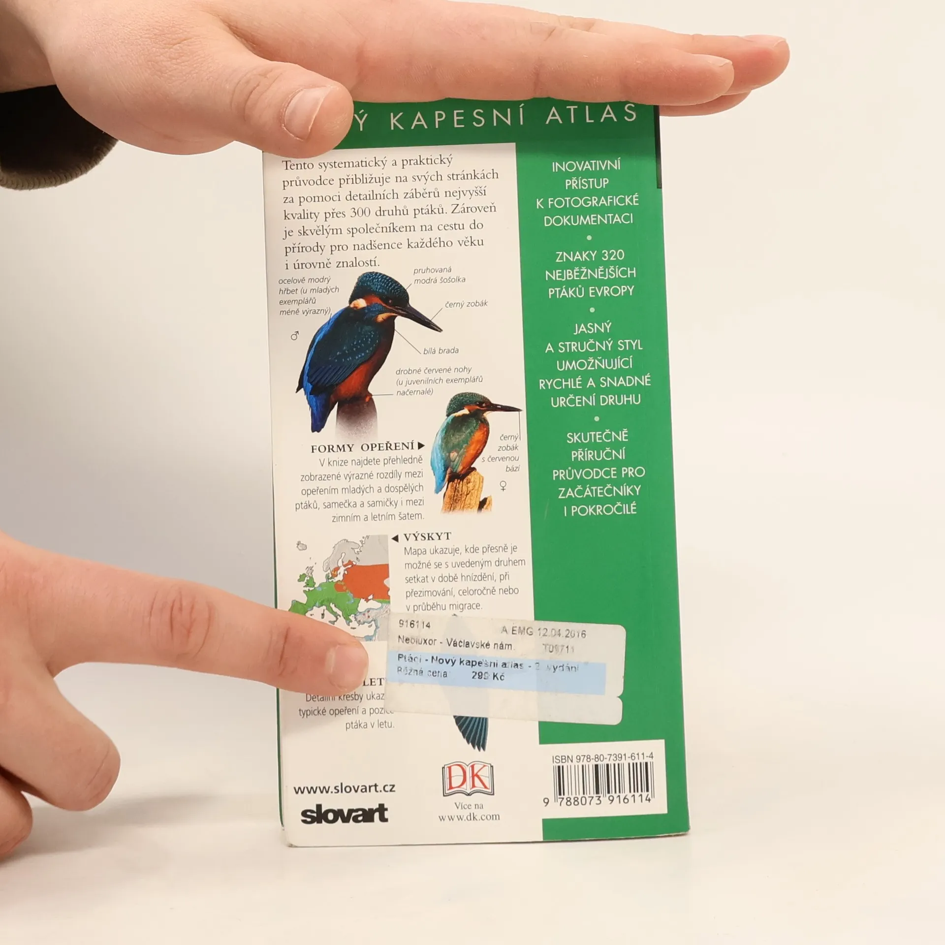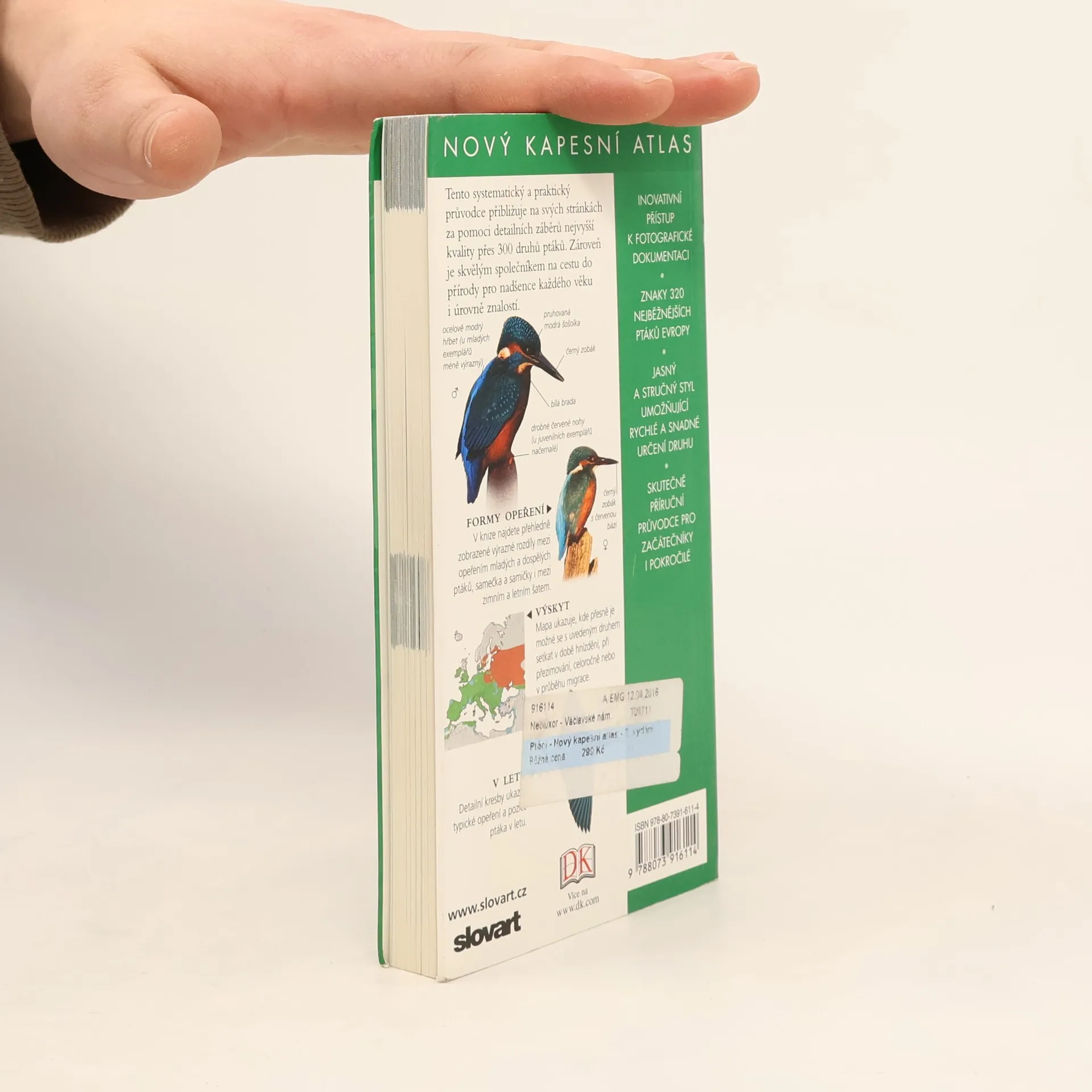 Barevný kapesní atlas obsahuje údaje o 320 nejběžnějších druzích ptáků vyskytujících se v Evropě. Ptáci jsou v knize rozděleni do skupin: pěvci, lovní, brodiví, vodní a mořští ptáci, sovy a dravci. V úvodu každé skupiny ptáků jsou popsány jejich společné znaky, ptáci jsou řazeni podle čeledí, jednotlivé druhy pak podle velikosti, od nejmenších po největší. U každého druhu jsou uvedeny jeho charakteristické vlastnosti a důležité údaje, detailní fotografie včetně zobrazení ptáka v letu nebo z podhledu.