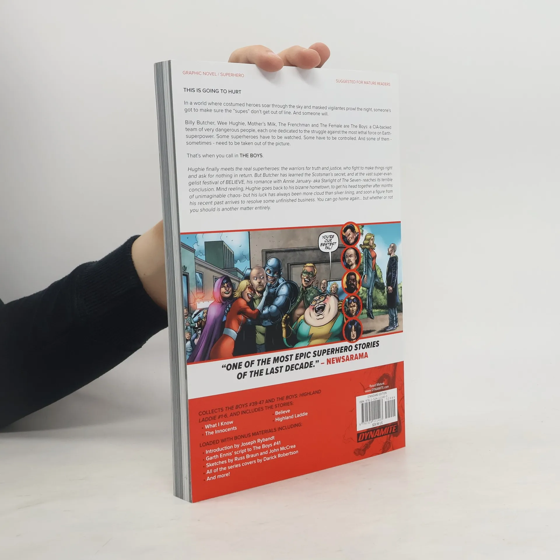 "This is going to hurt. In a world where costumed heroes soar through the sky and masked vigalantes prowl the night, someone's got to make sure the 'supes' don't get out of line. And someone will. Billy Butcher, Wee Hughie, Mother's Milk, The Frenchman, and The Female are The Boys: a CIA-backed team of very dangerous people, each one dedicated to the struggle against the most lethal force on Earth--superpower. Some superheroes have to be watched. Some have to be controlled. And some of them - sometimes - need to be taken out of the picture. That's when you call in The Boys. Hughie finally meets the real superheroes: the warriors for truth and justice, who fight to make things right and ask for nothing in return. But Butcher has learned the Scotsman's secret, and at the vast super-evangelist festival of BELIEVE, his romance with Annie January - aka Starlight of the Seven - reaches its terrible conclusion. Mind reeling, Hughie goes back to his bizarre hometown, to get his head together after months of unimaginable chaos - but his luck has always been more cloud than silver lining, and soon a figure from his recent past arrive to resolve some unfinished business. You can go home again... but whether or not you should is another matter entirely."--back cover.