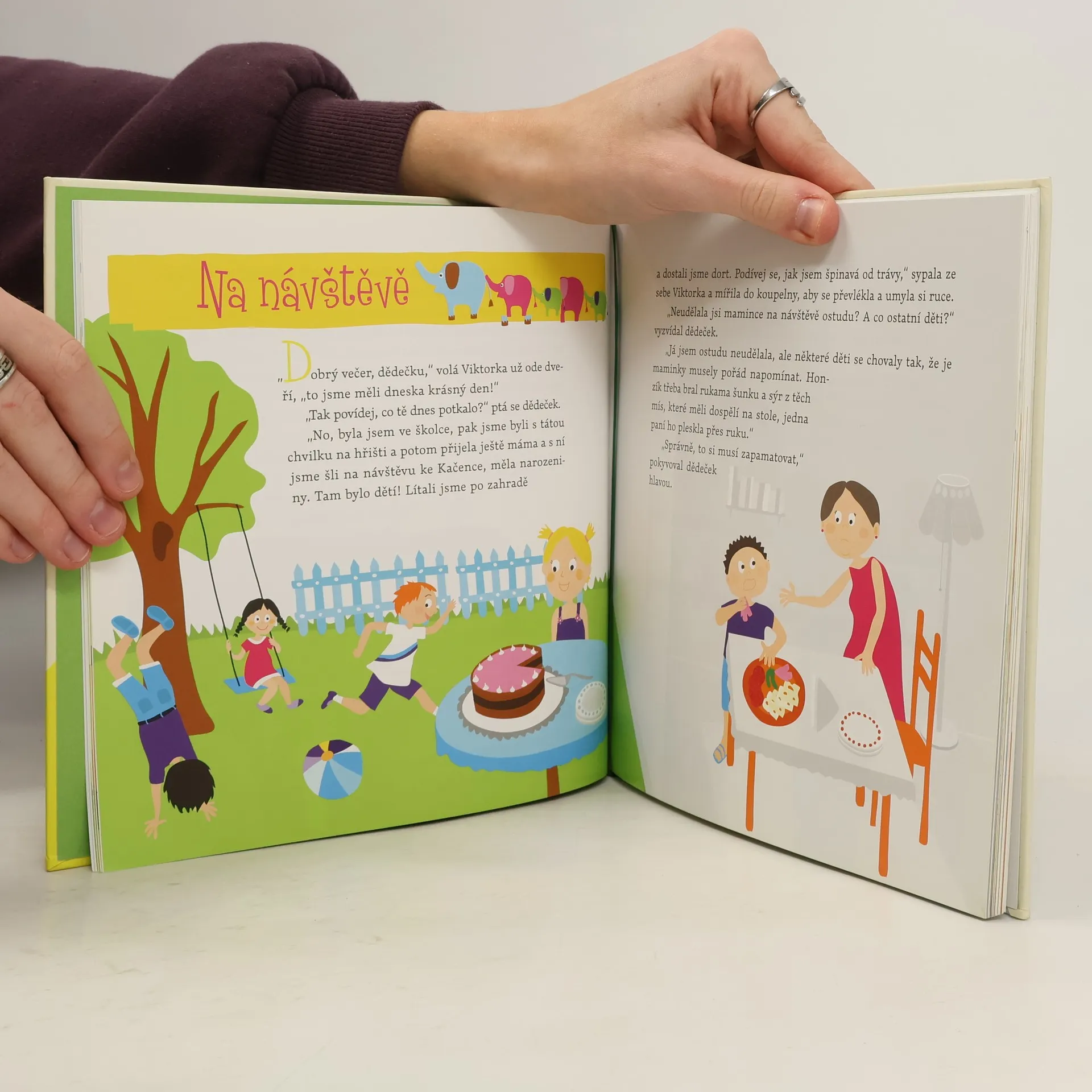 Knížka Dědečku, vyprávěj je určena dětem od tří let, vypráví o světě etikety pohledem malého děvčátka a jejího trpělivého a laskavého dědečka. Děti se naučí základům chování ve společenských situacích, které jsou přiměřené jejich věku a zkušenostem. Dozvědí se, jak se máme chovat v rodině, na ulici, ve školce, na návštěvě, u stolu, v divadle, v restauraci i v hotelu. Vyprávění moudrého dědečka je protkáno pohádkovými příběhy, které v dětech pěstují ohleduplnost, obětavost, lásku ke světu kolem nich. Kniha jim položí základy, na nichž pak budou stavět, až budou starší a budou je potkávat nové zkušenosti. Knížka je bohatá na obrázky, proto si ji mohou děti po prvním přečtení s dospělými „číst“ i samy. Na konci knihy je sérii otázek ke každé kapitole, aby si dospělí s dětmi mohli o tématech kapitol ještě vyprávět.