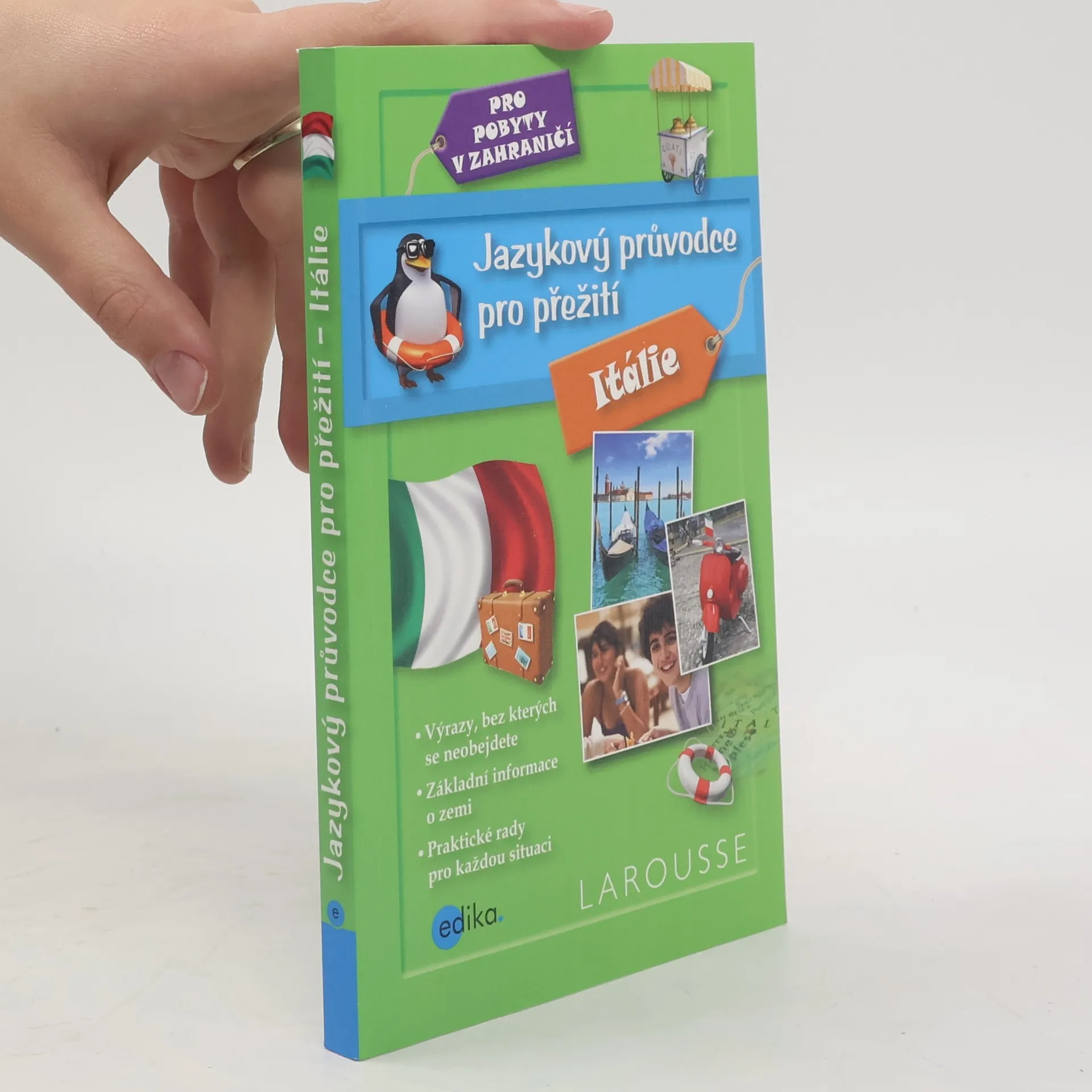 Chystáš se odjet na studijní pobyt do Itálie? Pak ti tento šikovný jazykový průvodce pomůže nejen s přípravami na cestu, ale hlavně ti usnadní každodenní pobyt v zemi pizzy. Najdeš tam nezbytné výrazy pro každou situaci (příjezd, jídla a večery s rodinou, studium, noví přátelé, hobby, nákupy, výlety…), základní informace o zemi a také praktické rady, které určitě oceníš během pobytu. Přeloženo z francouzštiny (překlad Barbora Antonová).