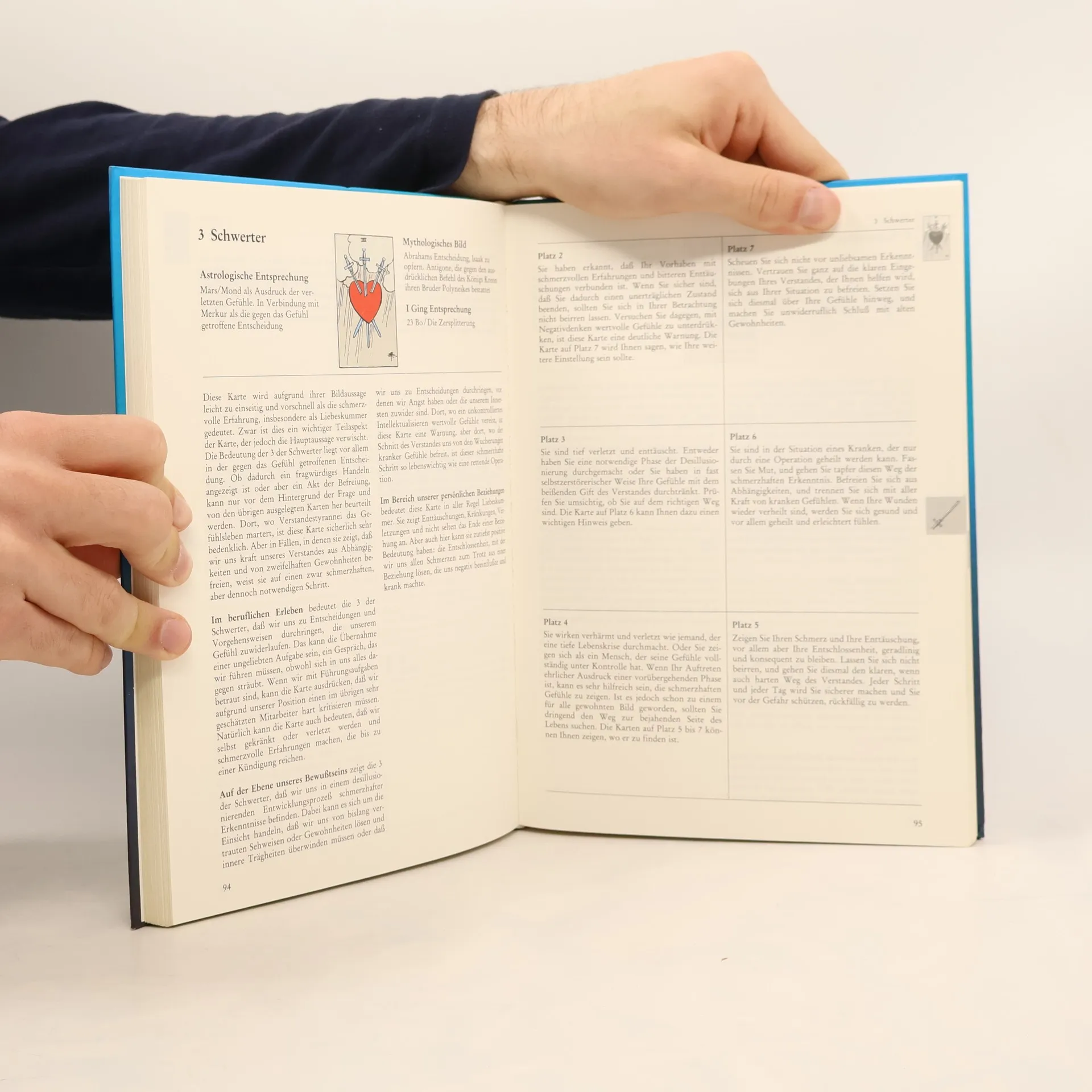 Das Arbeitsbuch zum Tarot läßt sich auf vielerlei Weise gebrauchen: • als Lehrbuch zum Tarot, das den praktischen Einstieg ohne theoretische Vorkenntnisse weist • als Orakelbuch, das bildverschlüsselte Antworten auf persönliche Fragen gibt • als Praxisbuch, das für alle 78 Tarotkarten die allgemeine Alltagsbedeutung und die speziellen Aussagen für die Bereiche Beruf, Beziehung und Bewußtsein erläutert • als Nachschlagebuch, das die unterschiedliche Bedeutung der 78 Karten für alle 7 Plätze des Spiels "Der Weg" erläutert • als Arbeitsbuch, das dem Leser genügend Raum für seine eigenen Erfahrungen läßt. Der Fragende wird nicht mit einer mehr oder minder zwangsläufigen Entwicklung konfrontiert. Ihm werden gangbare Wege aufgezeigt, ihm wird - anhand acht verschiedener Legesysteme - deutlich gemacht, wie er sich im Hinblick auf das Fragethema bislang verhalten hat, was er statt dessen tun soll und womit er dabei rechnen darf und muß. Für den Fortgeschrittenen sind vor allem die Alltagsbetrachtungen bereichernd, mit denen die 78 Karten in den verschiedenen Erfahrungsbereichen beschrieben werden. Darüber hinaus schaffen die jeweiligen mythologischen Bilder, die astrologischen Zuordnungen und I Ging-Entsprechungen einen größeren Gesichtskreis.