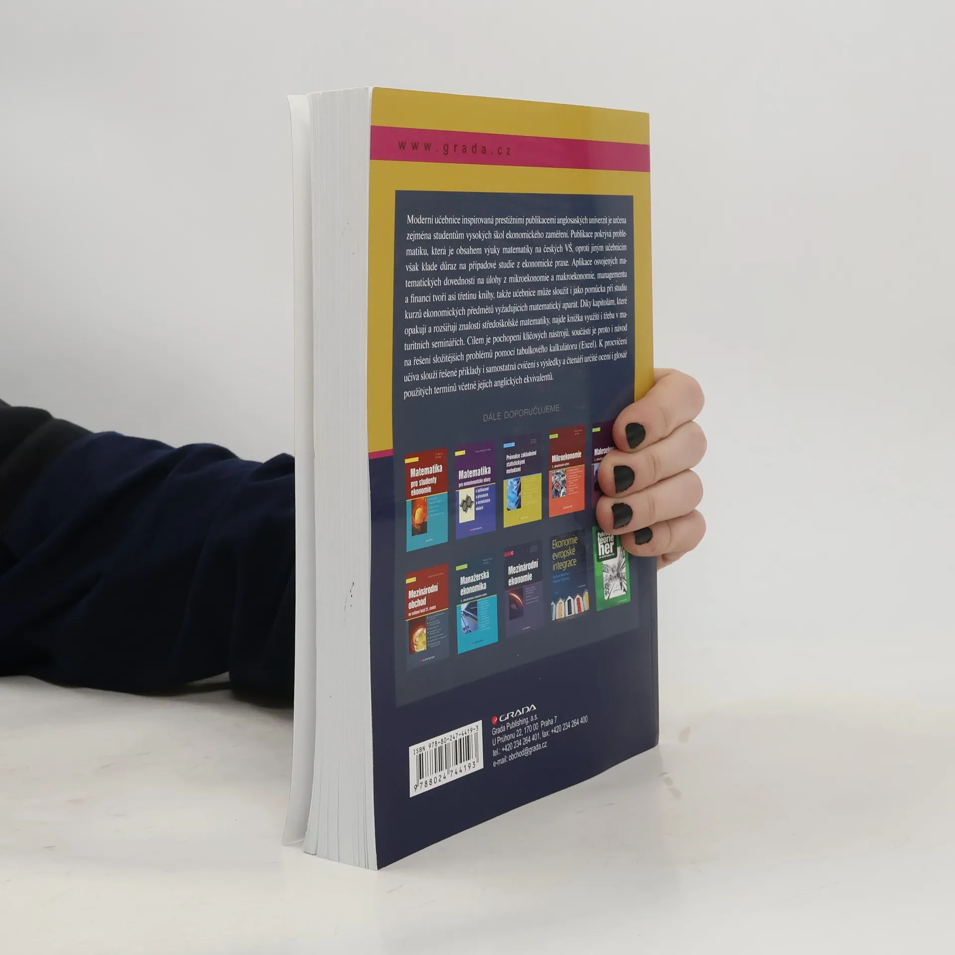 Moderní učebnice inspirovaná prestižními publikacemi anglosaských univerzit je určena zejména studentům vysokých škol ekonomického zaměření. Publikace pokrývá problematiku, která je obsahem výuky matematiky na českých VŠ, oproti jiným učebnicím však klade důraz na případové studie z ekonomické praxe. Aplikace osvojených matematických dovedností na úlohy z mikroekonomie a makroekonomie, managementu a financí tvoří asi třetinu knihy, takže učebnice může sloužit i jako pomůcka při studiu kurzů ekonomických předmětů vyžadujících matematický aparát. Díky kapitolám, které opakují a rozšiřují znalosti středoškolské matematiky, najde knížka využití i třeba v maturitních seminářích. Cílem je pochopení klíčových nástrojů, součástí je proto i návod na řešení složitějších problémů pomocí tabulkového kalkulátoru (Excel). K procvičení učiva slouží řešené příklady i samostatná cvičení s výsledky a čtenáři určitě ocení i glosář použitých termínů včetně jejich anglických ekvivalentů