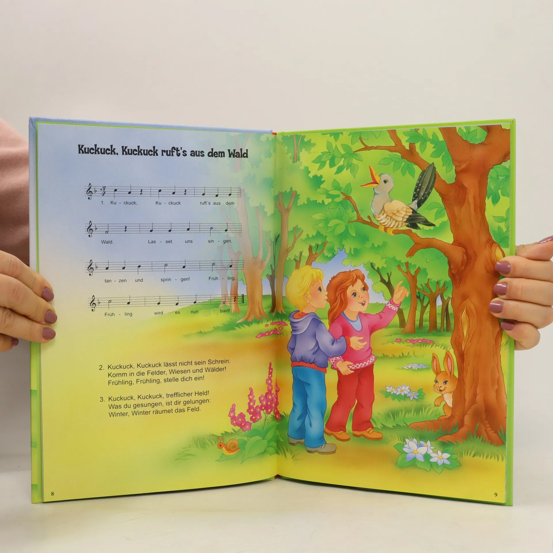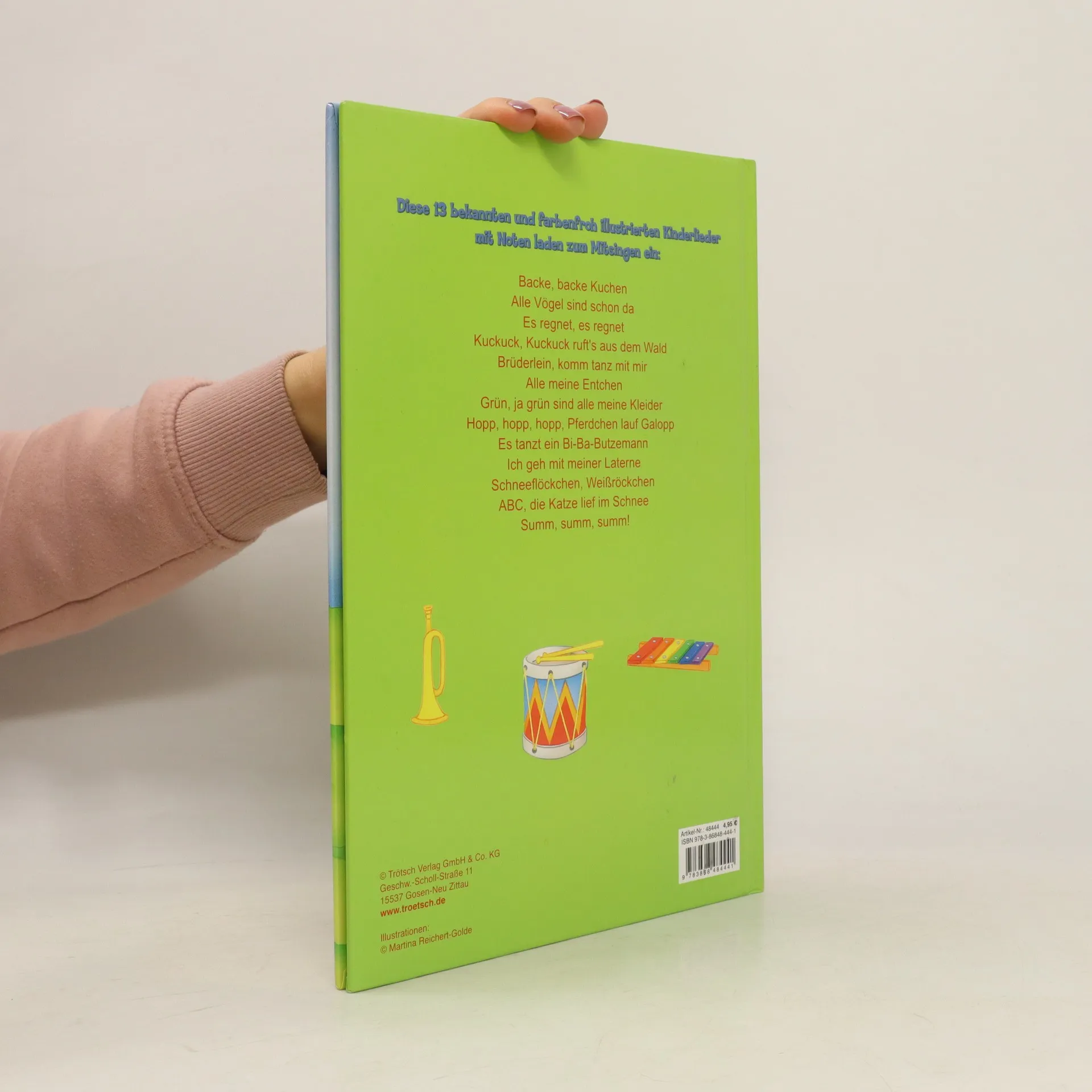 Die 13 farbenfroh illustrierten Kinderlieder mit Noten laden zum Mitsingen ein.