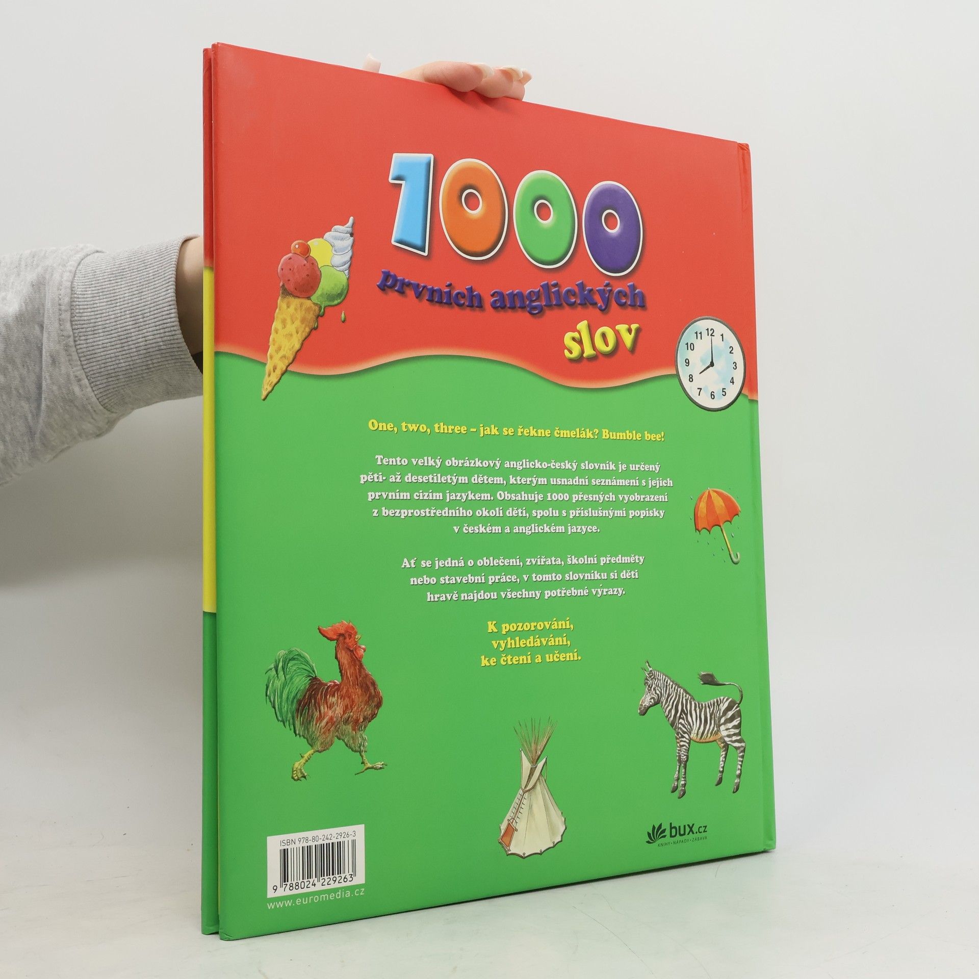 Obrázkový anglicko-český slovník je určený pěti- až desetiletým dětem, kterým usnadní seznámení s jejich prvním cizím jazykem. Obsahuje 1000 přesných vyobrazení z bezprostředního okolí dětí, spolu s příslušnými popisky v českém a anglickém jazyce. Ať se jedná o oblečení, zvířata, školní předměty nebo stavební práce, v tomto slovníku si děti hravě najdou potřebné výrazy.