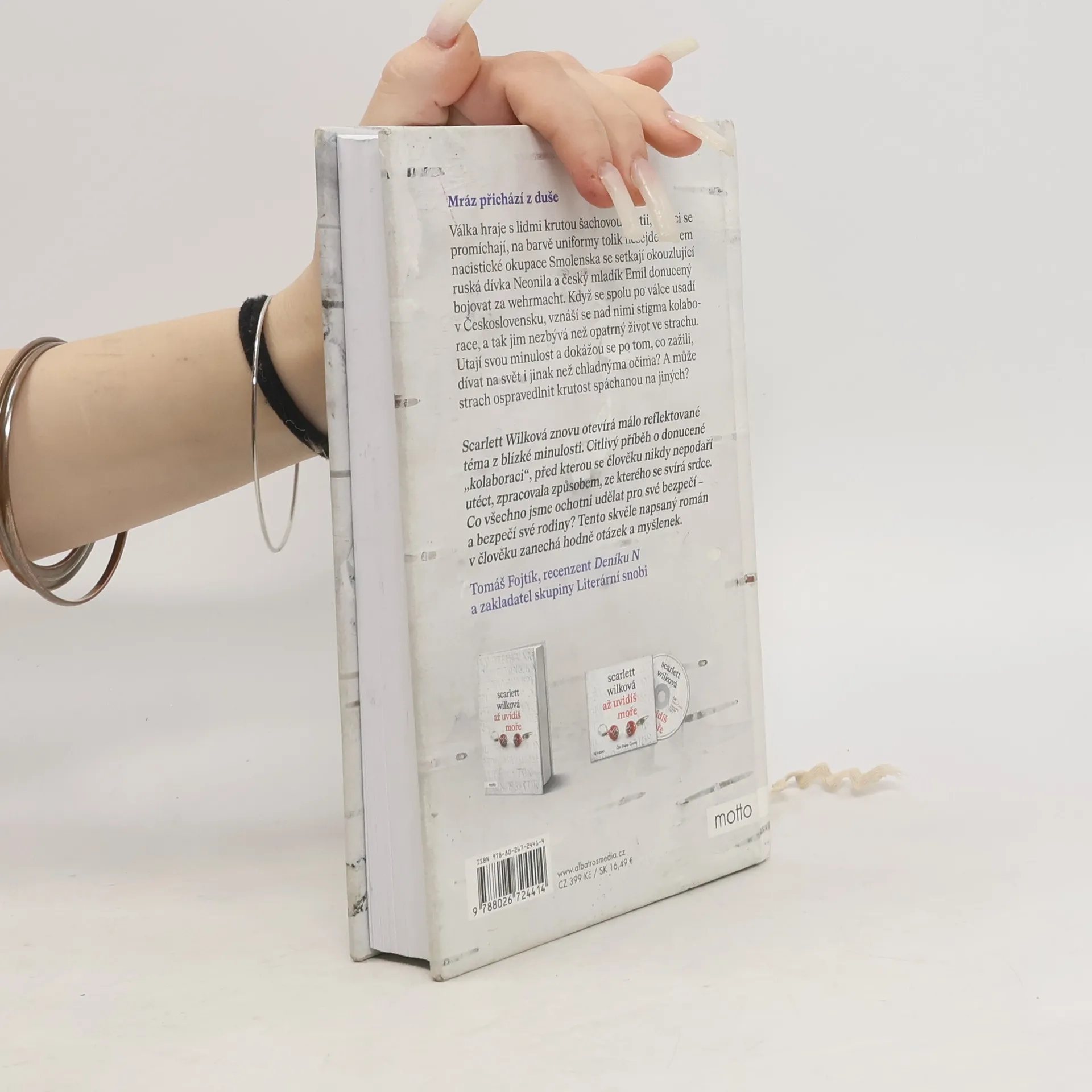 Mráz přichází z duše. Historický román od autorky bestselleru Až uvidíš moře.Válka hraje s lidmi krutou šachovou partii, pěšáci se promíchají, na barvě uniformy tolik nesejde. Během nacistické okupace Smolenska se setkají okouzlující ruská dívka Neonila a český mladík Emil donucený bojovat za wehrmacht. Když se spolu po válce usadí v Československu, vznáší se nad nimi stigma kolaborace, a tak jim nezbývá než opatrný život ve strachu. Utají svou minulost a dokážou se po tom, co zažili, dívat na svět i jinak než chladnýma očima? A může strach ospravedlnit krutost spáchanou na jiných? Scarlett Wilková přichází s druhým románem, v němž opět otevírá citlivé a málo reflektované téma novodobých dějin.