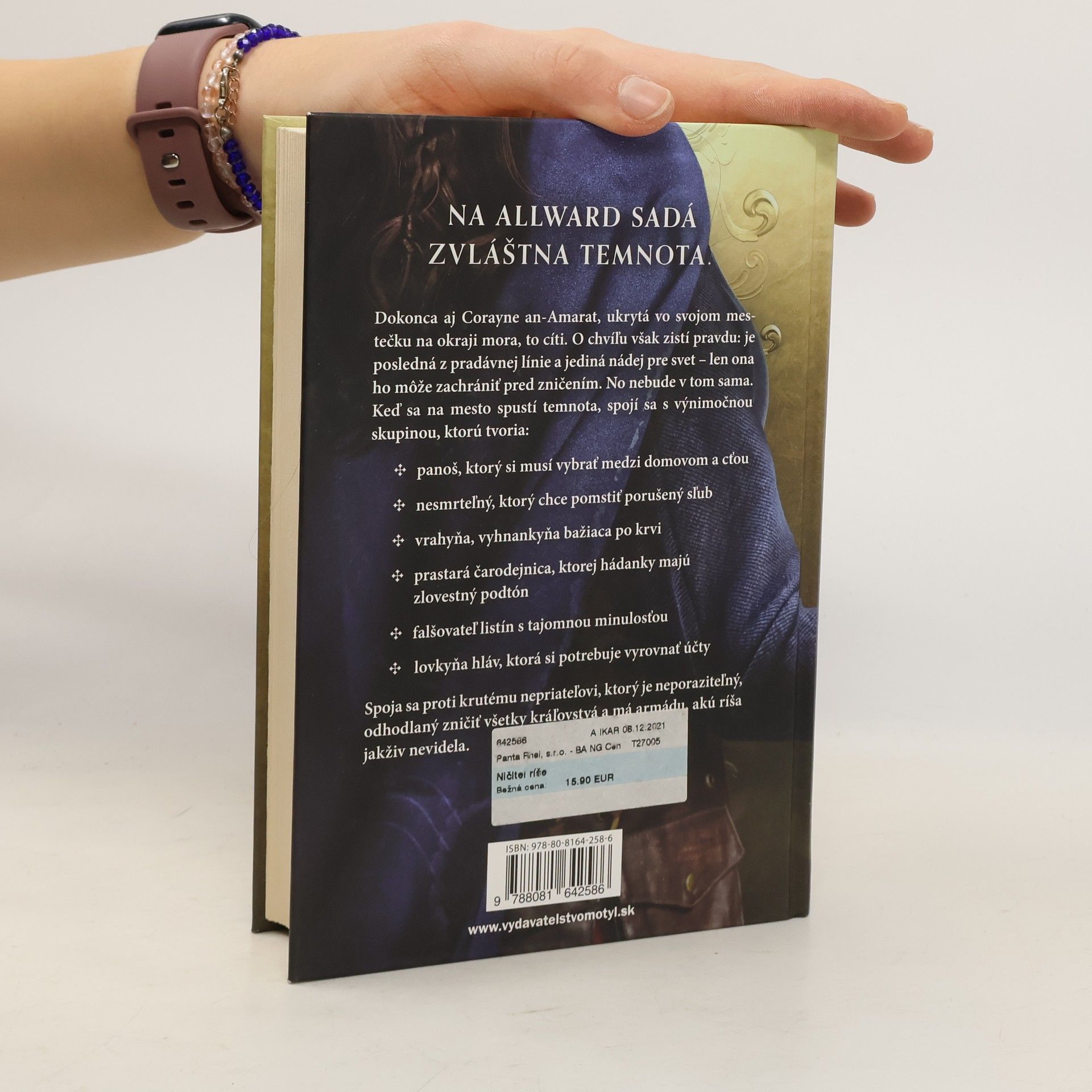 Zvláštna temnota začína rásť v Allwarde. Corayne an-Amarat, ukrytá vo svojom malom mestečku na okraji mora, to sama cíti. Za chvíľu ale zistí pravdu: Je poslednou z pradávnej línie a je jedinou, ktorá môže zachrániť svet pred jeho zničením. No nebude v tom sama. Keď sa na mesto spustí temnota, spojí sa s jedinečnou skupinou, ktorú tvoria: Šľachtic, ktorý si musí vybrať medzi domovom a cťou Nesmrteľník, ktorý chce pomstiť porušenie sľubu Vrah, vyhnanec, ktorý baží po krvi Pradávna čarodejnica, ktorej hádanky ukrývajú zlovestný podtón Kováč s tajomnou minulosťou Nájomný vrah, ktorý si potrebuje vyrovnať účty Všetci sa spoja proti krutému nepriateľovi, ktorý je neporaziteľný a je odhodlaný zničiť všetky kráľovstvá.