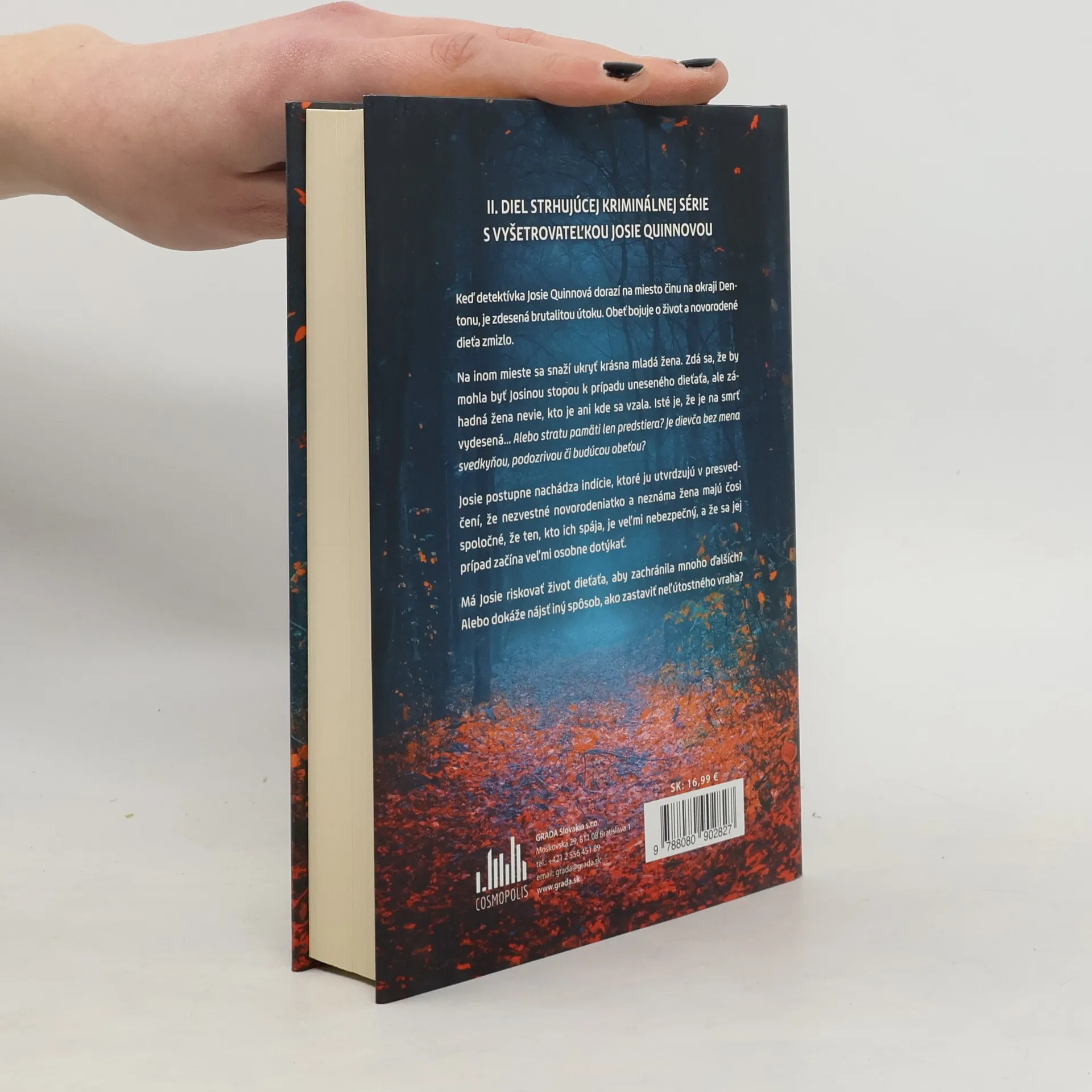 Keď detektívka Josie Quinnová dorazí na miesto činu na okraji Dentonu, je zdesená brutalitou útoku. Obeť bojuje o život a novorodené dieťa zmizlo. Na inom mieste sa snaží ukryť krásna mladá žena. Zdá sa, že by mohla byť Josiiným vodítkom k prípadu uneseného dieťaťa, ale záhadná žena nevie, kto je, kde sa vzala ani čoho sa tak bojí. Isté je, že je na smrť vydesená... Alebo svoju amnéziu len predstiera? Je dievča bez mena svedkyňa, podozrivá alebo možno budúca obeť? Neskôr Josie nachádza indície, ktoré ju utvrdzujú v presvedčení, že nezvestné novorodeniatko a neznáma žena majú čosi spoločné, že ten, kto ich spája, je veľmi nebezpečný a že sa jej prípad začína veľmi osobne dotýkať. Má Josie riskovať život dieťaťa, aby zachránila mnoho ďalších? Alebo dokáže nájsť iný spôsob, ako zastaviť neľútostného vraha?