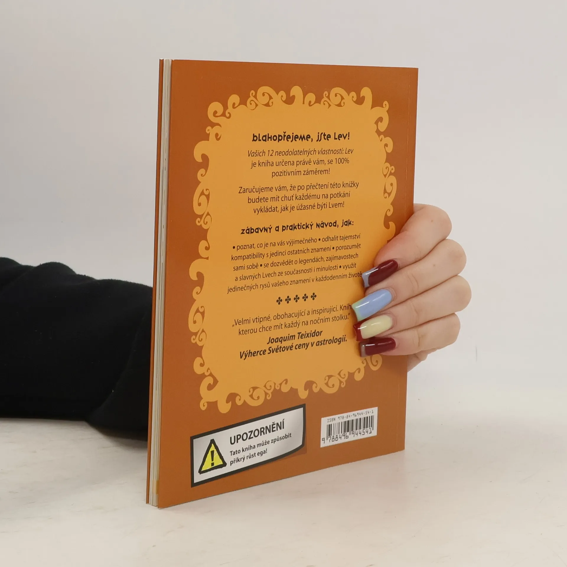 Kniha popisuje typické vlastnosti lidí narozených ve znamení Lvy s vtipem, pozitivně a zábavně. Po přečtení knihy o svém znamení na sebe budete náležitě pyšní! Pobaví čtenáře jakéhokoli věku a vkusu. Hravě kombinuje barevné ilustrační obrázky a vtipný text. Silné stránky jsou vysvětleny na příkladu celebrit, pověstí, historických událostí, zábavných skutečností a anekdot. Kniha čtenáři nabízí vzácnou možnost dozvědět se více i o tajemství slučitelnosti s jinými znameními. Mysleli jste si, že se k určitém znamení nehodíte? Špatně! Kniha nabízí klíč k poznání jiných znamení a odhaluje tajemství, jak spolu dobře vycházet. Na poslední stránce je skryté překvapení, které je možné odhalit pouze za použití zrcátka. 100 % pozitivní. Ideální dárek.