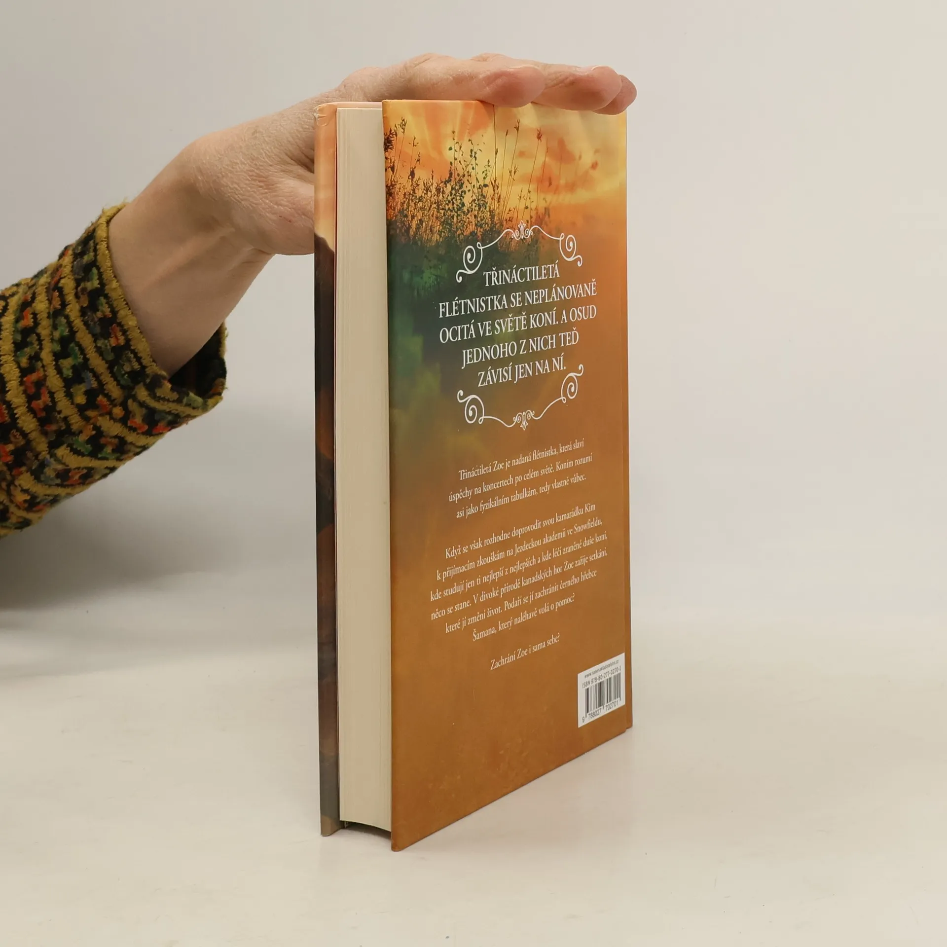 Třináctiletá Zoe je nadaná flétnistka, která slaví úspěchy na koncertech po celém světě. Koním rozumí asi jako fyzikálním tabulkám, tedy vlastně vůbec. Když se však rozhodne jet podpořit svou kamarádku Kim u přijímací zkoušky na Jezdeckou akademii ve Snowfieldu, kde studují jen ti nejlepší z nejlepších a kde léčí zraněné duše koní, něco se stane. V divoké přírodě kanadských hor Zoe zažije setkání, které jí změní život. Podaří se jí zachránit černého hřebce Šamana, který naléhavě volá o pomoc? Zachrání Zoe i sama sebe? Šamanův pohled říká, že to může udělat jen ona.