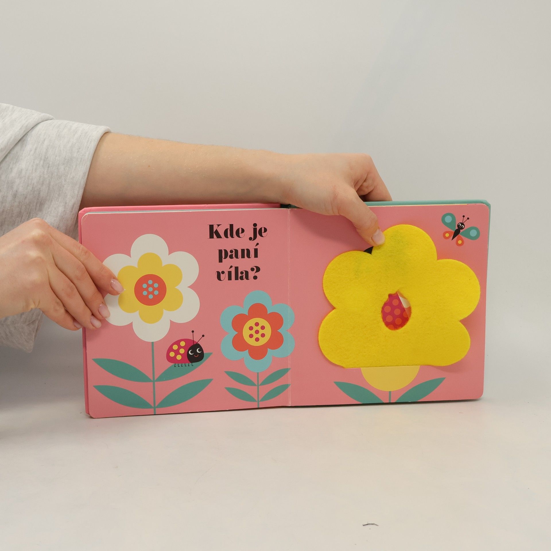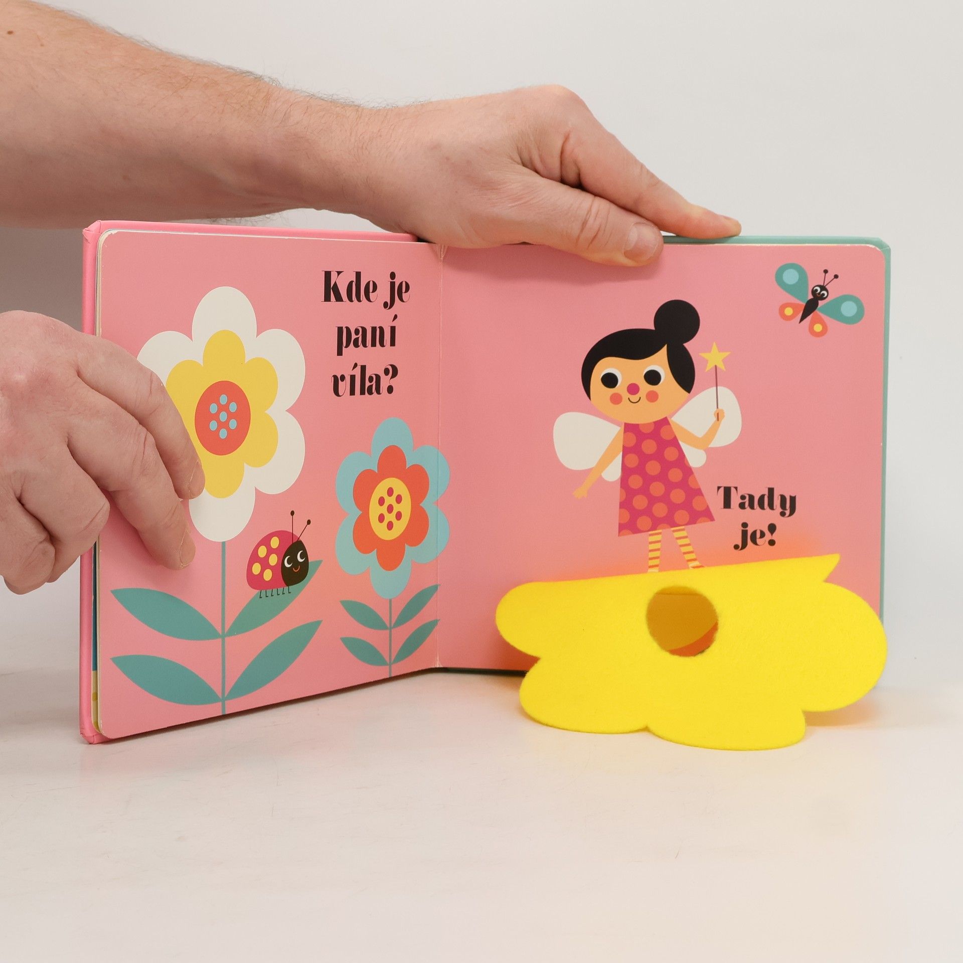 Knížka vhodná pro nejmenší děti a pro jejich první seznamovaní se světem. Rozvíjí jejich zrak, hmat a motorické schopnosti. Děti budou hledat schované pohádkové bytosti, měkké detaily z plsti umožní dětem zlepšovat poznávání světa hmatem. Na konci knihy na děti vykoukne překvapení. V malém kulatém zrcátku uvidí… Kohopak? No přece sebe!
