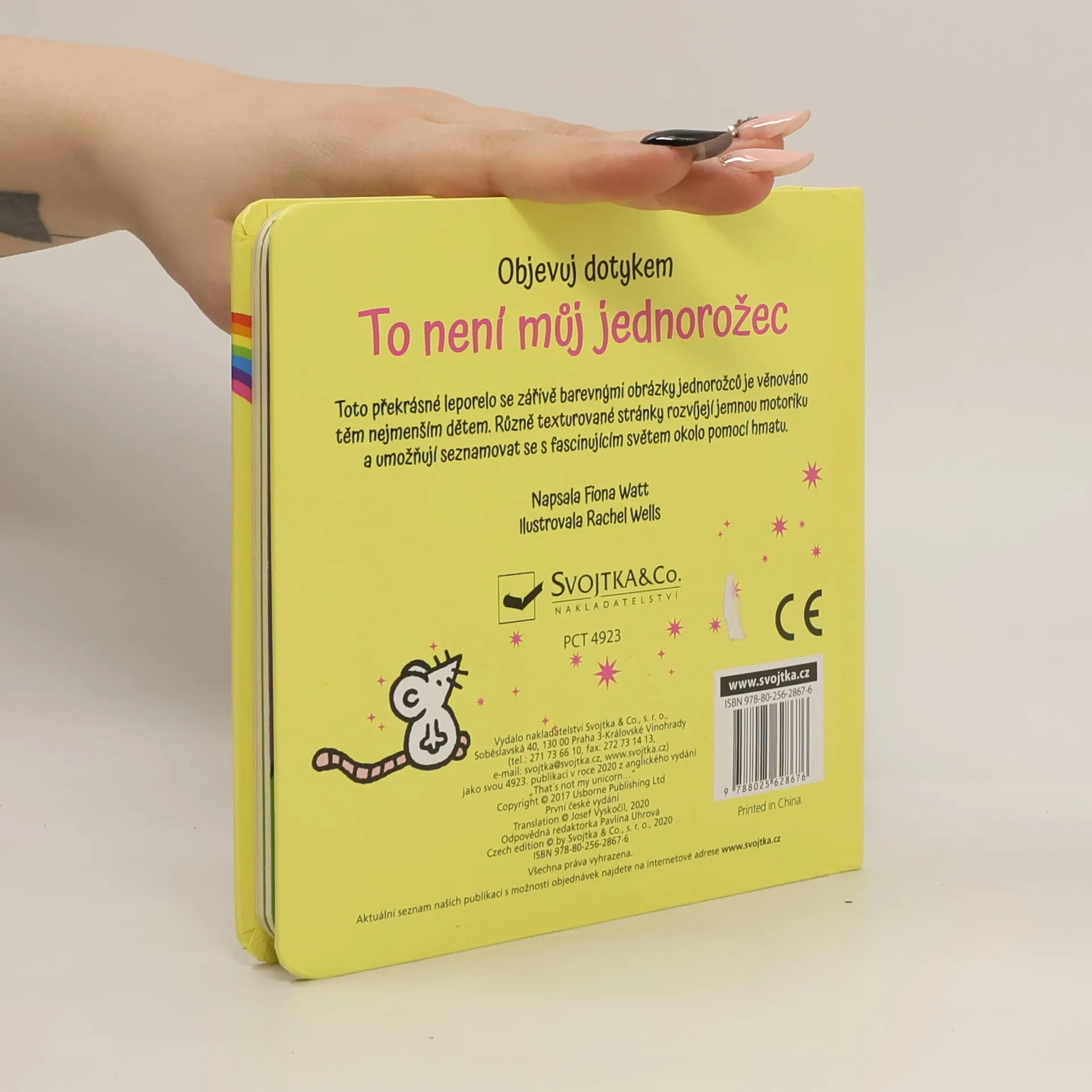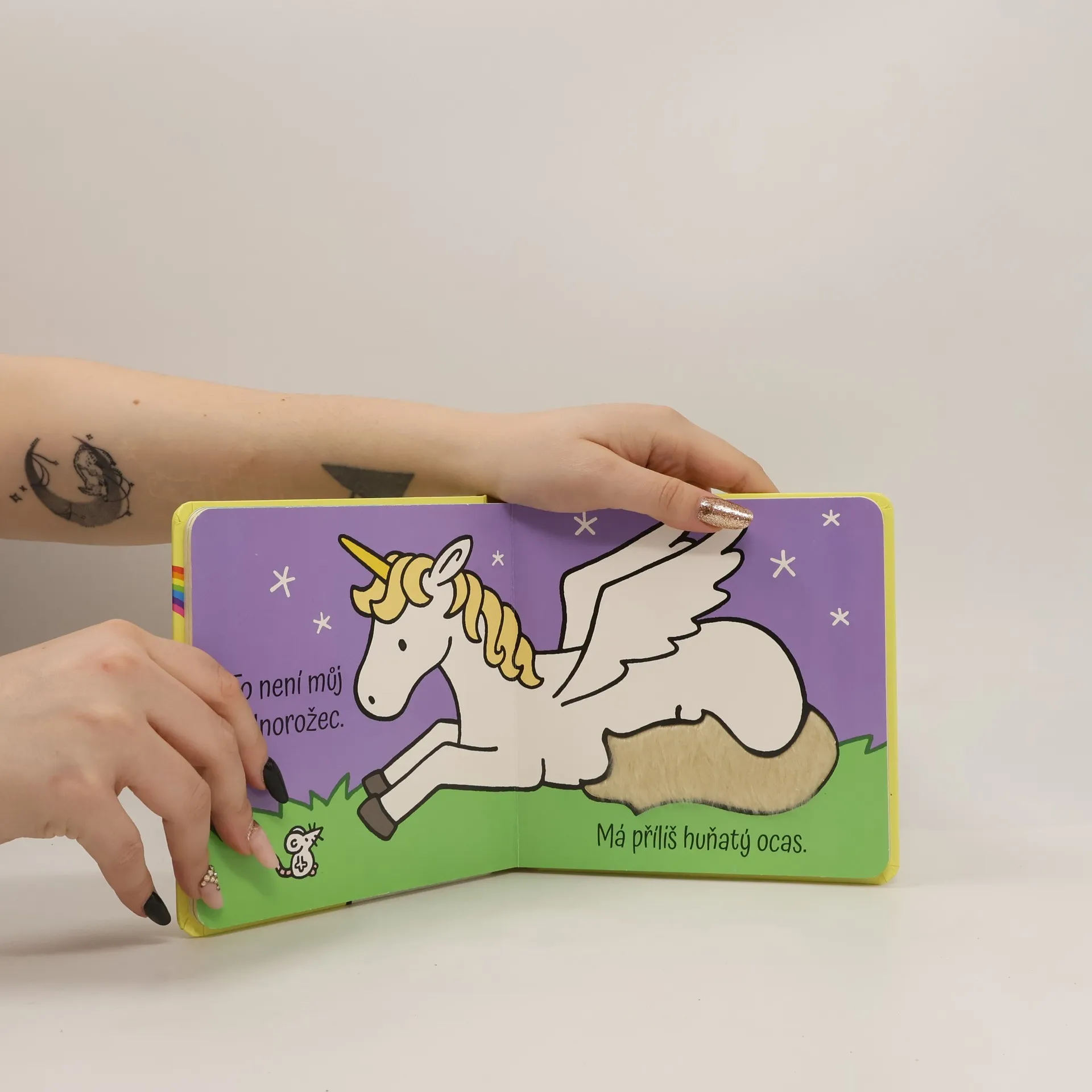 Tvůj jednorožec se ztratil! Najdeš ho mezi jeho kamarády? Má tvůj jednorožec huňatý ocas, nebo drsná kopýtka? A co ten s křídly, není to on? Pozorně se dívej a hledej! Děti si mohou jednotlivé prvky osahat a zlepšovat tak poznávání materiálů a povrchů pomocí hmatu. Leporelo se zářivými a krásnými ilustracemi rozvíjí jak zrak a hmat, tak i motorické schopnosti nejmenších dětí.