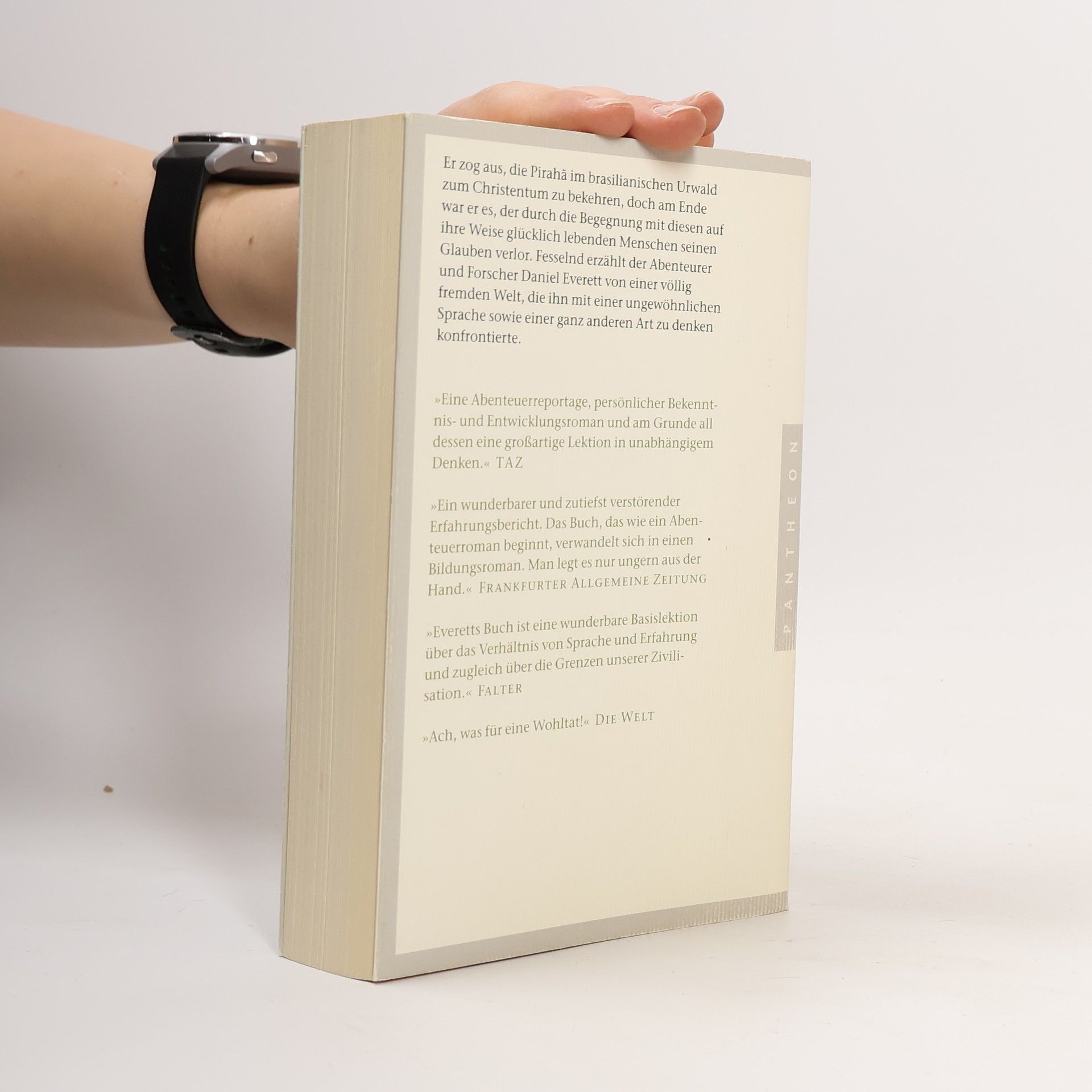 Vom Missionar zum Bekehrten Als Daniel Everett 1977 mit Frau und Kindern in den brasilianischen Urwald reiste, wollte er als Missionar den Stamm der Pirahã, der ohne Errungenschaften der modernen Zivilisation an einem Nebenfluss des Amazonas lebt, zum christlichen Glauben bekehren. Er begann die Sprache zu lernen und stellte schnell fest, dass sie allen Erwartungen zuwiderläuft. Die Pirahã kennen weder Farbbezeichnungen wie rot und gelb noch Zahlen, und folglich können sie auch nicht rechnen. Sie sprechen nicht über Dinge, die sie nicht selbst erlebt haben – die ferne Vergangenheit also, Fantasieereignisse oder die Zukunft. Persönlicher Besitz bedeutet ihnen nichts.Everett verbrachte insgesamt sieben Jahre bei den Pirahã, fasziniert von ihrer Sprache, ihrer Sicht auf die Welt und ihrer Lebensweise. Sein Buch ist eine gelungene Mischung aus Abenteuererzählung und der Schilderung spannender anthropologischer und linguistischer Erkenntnisse. Und das Zeugnis einer Erfahrung, die das Leben Everetts gründlich veränderte. Ausstattung: mit Abbildungen