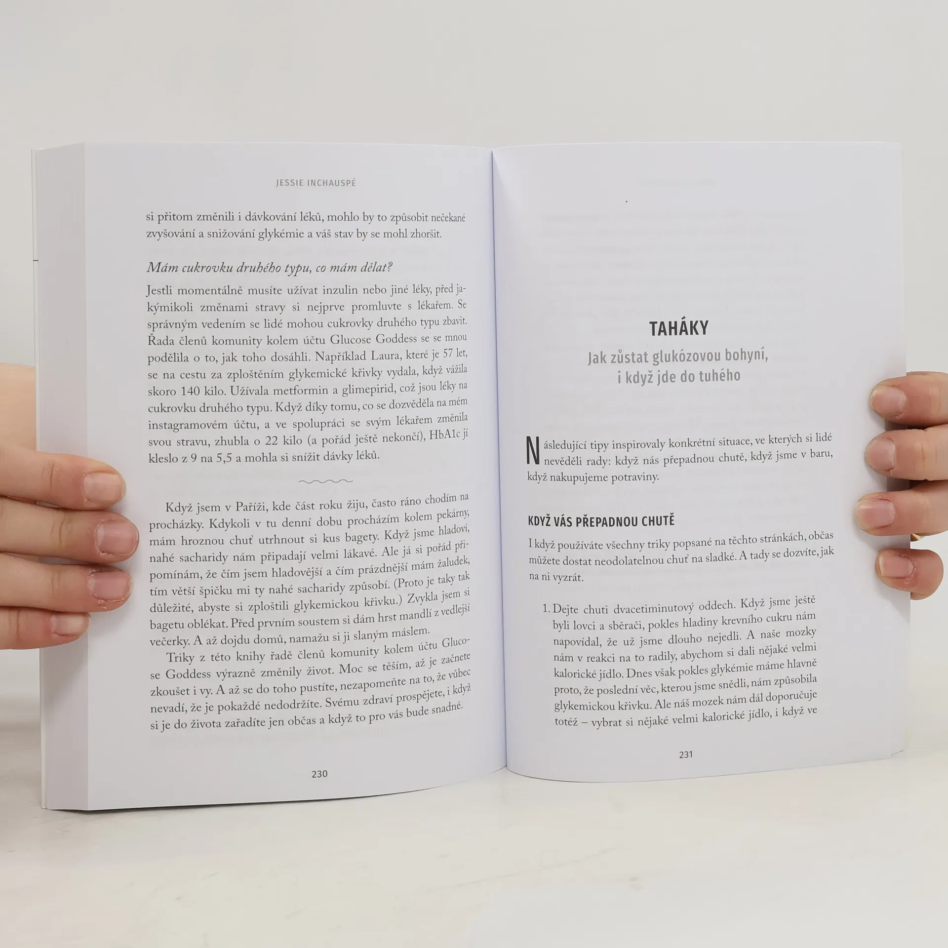 Deset triků, které vám pomohou vyrovnat hladinu glukózy v krvi bez nutnosti diety a umožní vám pokračovat v konzumaci oblíbených jídel. Chcete zlepšit své zdraví, spánek, náladu a energii, a také snížit chuť na sladké a hmotnost? To vše je možné díky jednoduchým metodám, které představuje biochemička Jessie Inchauspé, známá jako Glucose Goddess. Tyto techniky zpomalují stárnutí organismu, aniž byste se museli vzdát potravin, které máte rádi. Jessie čerpá z ověřených vědeckých poznatků a vlastního výzkumu, což vám umožní lépe kontrolovat hladinu krevního cukru, což má zásadní vliv na vaše zdraví a náladu. Glukóza, malá molekula v těle, má velký vliv na naše zdraví. Příliš vysoká hladina glukózy, které trpí devadesát procent populace, se projevuje chutí na sladké, únavou, hormonálními problémy a dalšími obtížemi. Dlouhodobě může vést k vážnějším zdravotním problémům, jako je cukrovka druhého typu nebo kardiovaskulární onemocnění. Jessie nabízí deset srozumitelných triků, které vám pomohou vyrovnat hladinu glukózy a zbavit se nepříjemných projevů, aniž byste museli držet dietu.