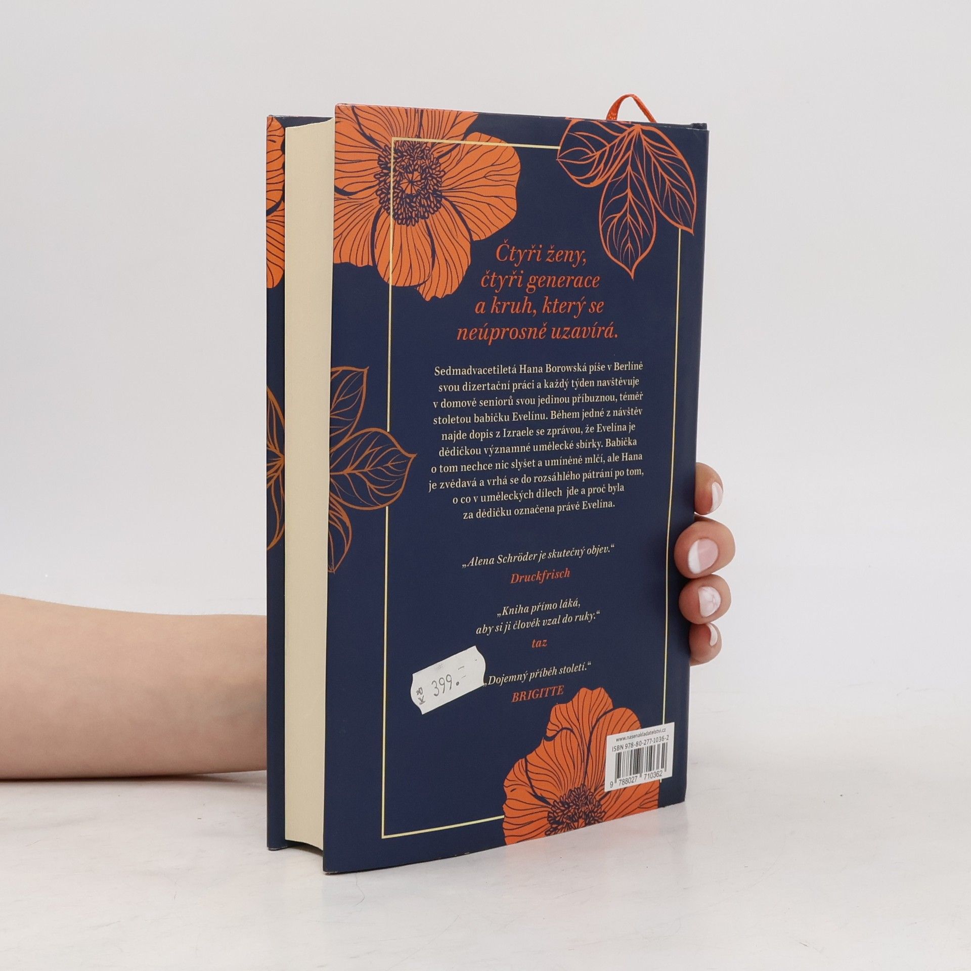 „Senta myslela na Itziga Goldmanna, který pravděpodobně právě teď předával soupis uměleckých děl a klíče od svého obchodu pověřenci říšské komory, a na slib, který mu dala. Tak to by bylo, pomyslela si. Sbohem, ty třpytivý, smradlavý, všechny požírající Berlíne. V tvém břiše mi bylo dobře, ale teď mě vyplivni. Nech mě jít. Zúčtovali jsme.“V Berlíně to žije, ale teprve 27letá Hana má pocit, že sama ještě žít nezačala. Její babička Evelína se naopak téměř po sto letech nemůže dočkat konce.Všechno změní až dopis z Izraele, v němž je Evelína identifikována jako dědička ztracené umělecké sbírky. Jak to, že Hana nemá ponětí o židovských předcích? A proč Evelína tak vytrvale odmítá mluvit o minulosti a o své matce?Stopa obrazů vede až do dvacátých let minulého století, k svéhlavé dívce jménem Senta...