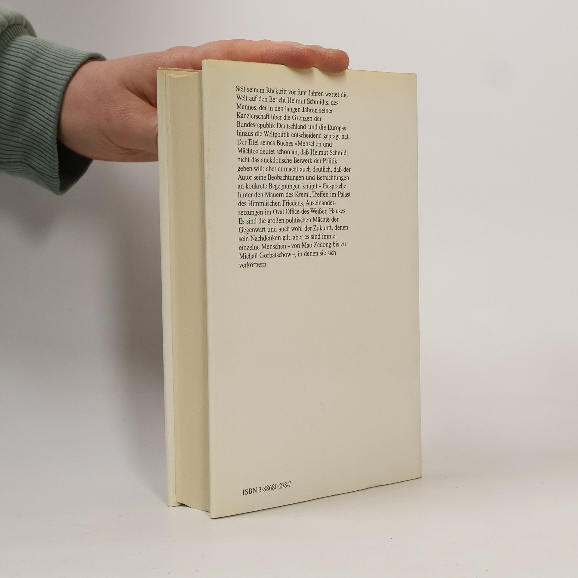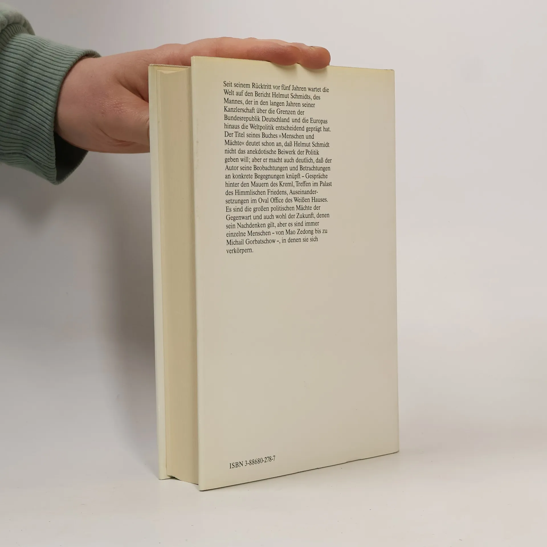 Helmut Schmidts sehr persönliche Erinnerungen an seine Kanzlerjahre Helmut Schmidt blickt wenige Jahre nach dem Ende seiner Amtszeit auf seine Kanzlerjahre zurück. Er knüpft seine Beobachtungen und Betrachtungen an konkrete Begegnungen – Gespräche hinter den Mauern des Kreml, Treffen im Palast des Himmlischen Friedens, Auseinandersetzungen im Oval Office des Weißen Hauses.