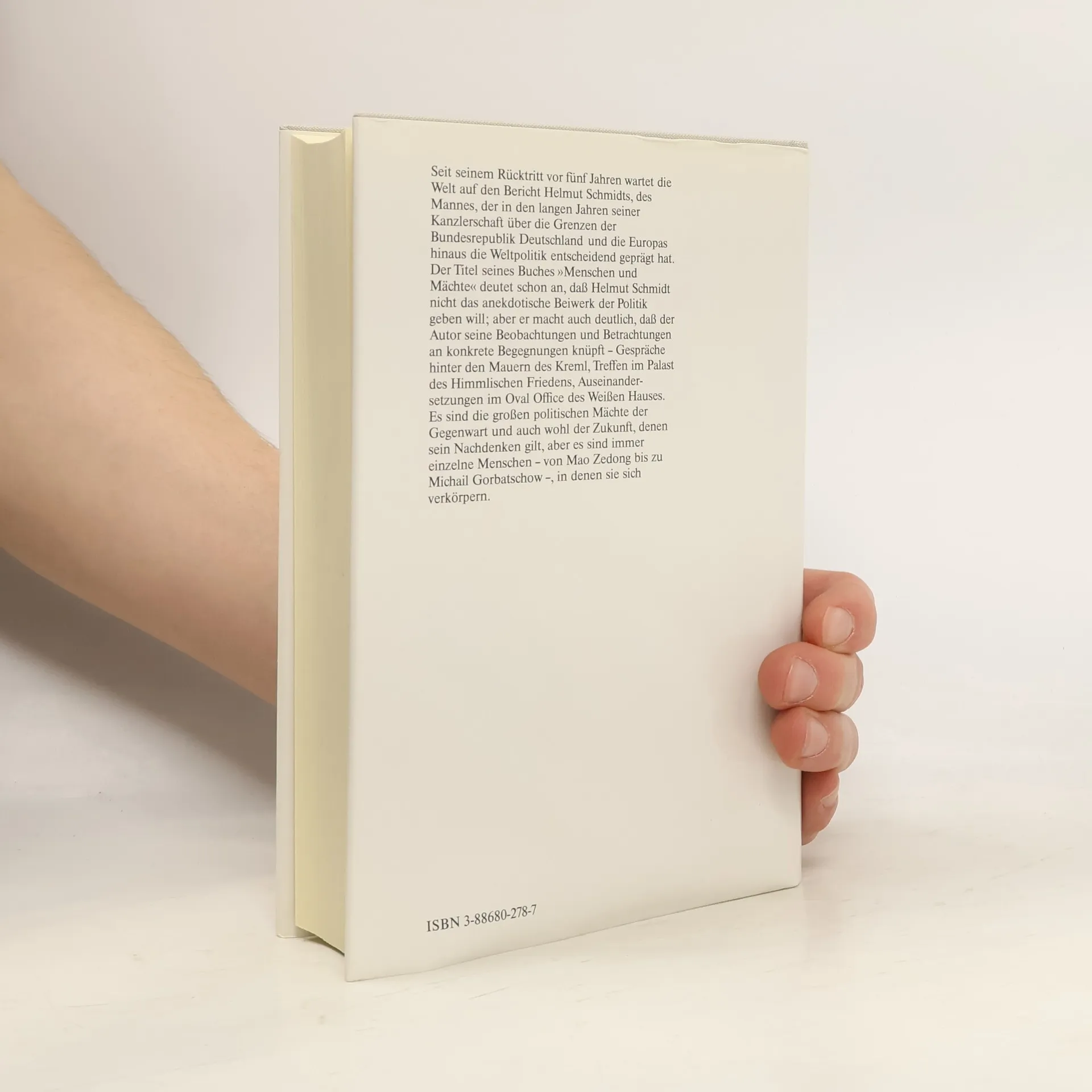 Helmut Schmidts sehr persönliche Erinnerungen an seine Kanzlerjahre Helmut Schmidt blickt wenige Jahre nach dem Ende seiner Amtszeit auf seine Kanzlerjahre zurück. Er knüpft seine Beobachtungen und Betrachtungen an konkrete Begegnungen – Gespräche hinter den Mauern des Kreml, Treffen im Palast des Himmlischen Friedens, Auseinandersetzungen im Oval Office des Weißen Hauses.