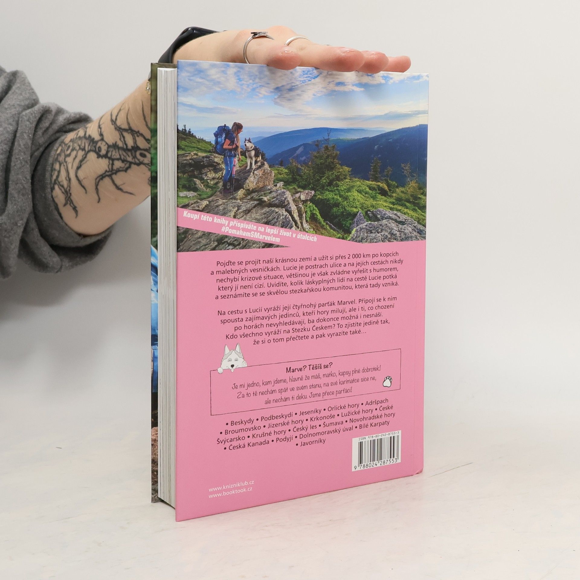 Lucie ve svých předešlých knihách popisovala krásy evropských stezek a náročnou Pacifickou hřebenovku. Tentokrát se však zaměřila na něco, co máme mnohem blíže. Na Stezku Českem.Pojďte si projít celou naši krásnou republiku a užít si přes 2000 km po českých kopcích a malebných vesničkách. Lucie je postrach ulice a na jejích cestách nikdy nechybí krizové situace, jež však většinou zvládne vyřešit s humorem, který jí není cizí. Uvidíte, kolik láskyplných lidí na cestě Lucie potká a s kým vším se seznámí.Na cestu s Lucií vyráží její největší parťák – sibiřský husky Marvel. Ale nebude jediný, kdo se k ní připojí. Nechá se zase ukecat brácha, který nesnáší šlapání do kopců? Přijedou kamarádky s dětmi? Připojí se 12letá holčička, která všem vytře zrak? Bude se partnerovi Lůcy stýskat více po Marvelovi, nebo po ní? Přijede i Marvelův tatínek? Kamarád, co miluje lezení a nesnáší chození? Kámoška s dalším huskym? Náhodní kolemjdoucí z přednášky? Guru lásky?Marvel: Je jedno, kam jdeme, hlavně že má matka kapsy plné kokin. Za to ji většinou nechám spát v mém stanu a na mé karimatce. V mém spacáku. A Honzovi se vždycky stýská více po mně.