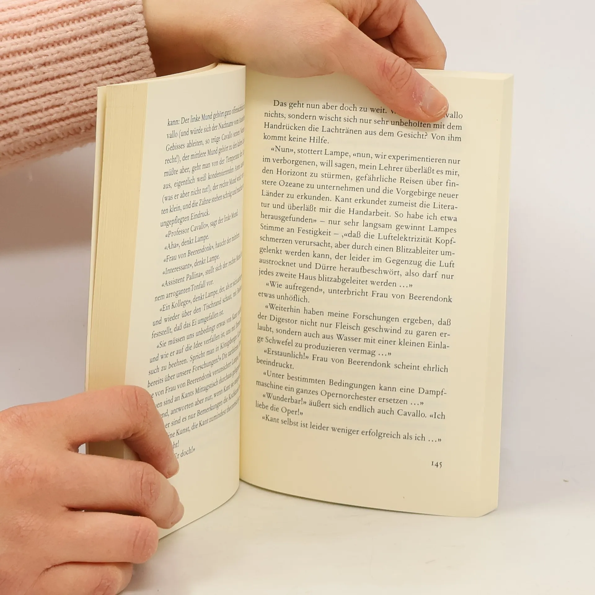 Was ist schwerer: die Vernunft oder der Mythos? Es gibt keinen Mittelweg! Königsberg im 18. Jahrhundert, mit seinem geistigen Zentrum Immanuel Kant. In den Besitz eines der ältesten Freunde Kants, Johann Georg Hamann, kommt eine rätselhafte Scherbe. Angeblich ein Stück des Siegeltons, mit dem Adam, nachdem er aus dem Paradies vertrieben wurde, den Pakt mit dem Teufel schloss, um die Erde kultivieren zu dürfen. Kant belächelt Hamann, der diese Scherbe für das Scheitern seiner Karriere verantwortlich macht, und schickt seinen treuen, aber leider etwas begriffsstutzigen Diener Lampe auf Reisen zu berühmten Forschern jener zeit, die helfen sollen, das Geheimnis dieser Scherbe zu lüften. Lampes Forschungsreisen fallen in die Jahre, in denen Kant an seinem hauptwerk arbeitet und durch Lampes Entdeckungen entscheidende Anstösse bekommt. Lampes Reisen führen ihn zum theologus electricus Prokop Divisch nach Mähren, den Miterfinder des Blitzableiters, zu Louis Papin nach Würzburg, der den Schnellkochtopf seines Grossvaters weiterentwickelt, zu Tiberio Cavallo nach Italien, den Erfinder der Eismaschine, zusammen mit Hamann sucht er den berühmten Magnetiseur Mesmer auf. Schliesslich rücken Kant, Hamann und Lampe der Scherbe mit den Klängen einer Glasharmonika zu Leibe, mit ungeahnten Folgen.