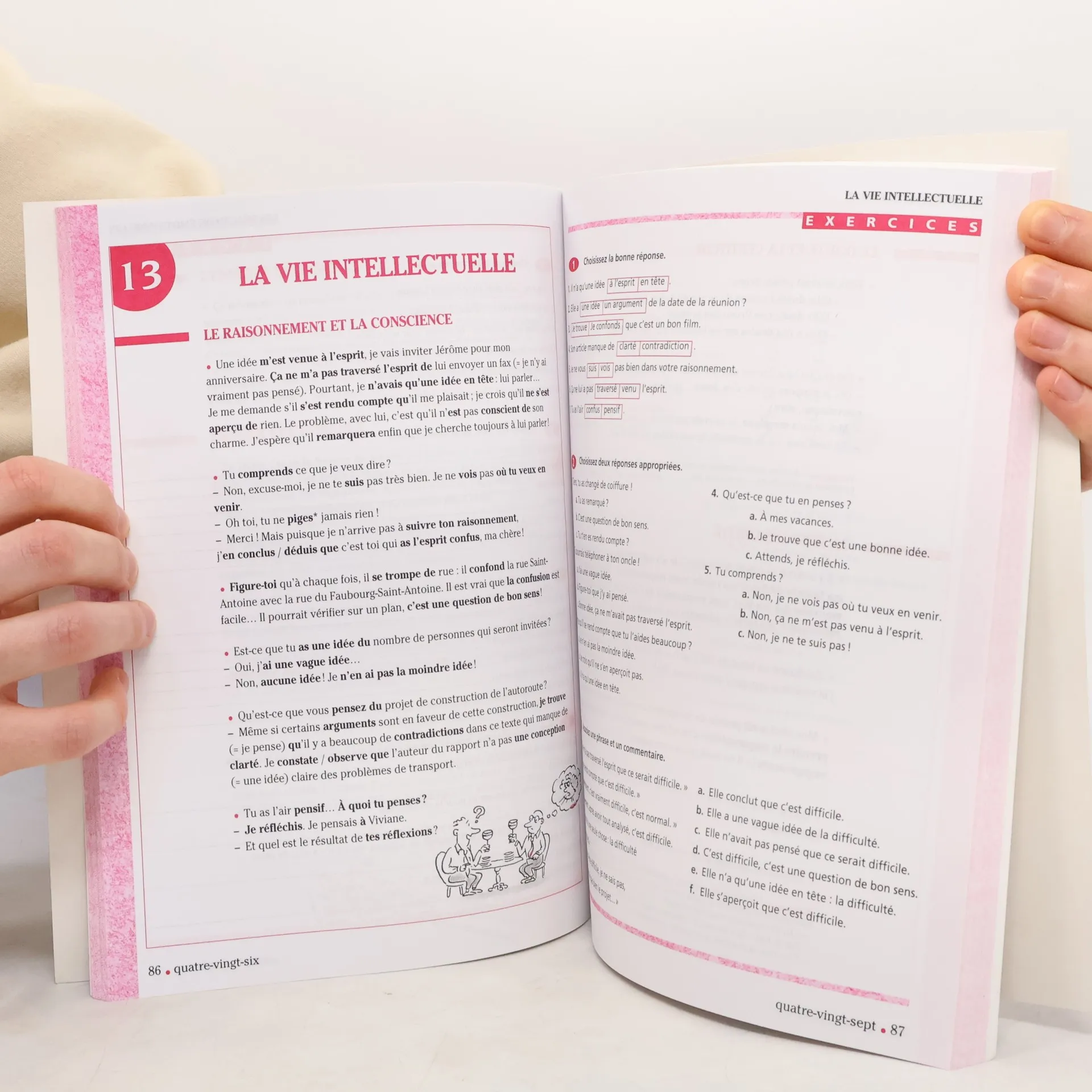 Sur la page de gauche une lecon de vocabulaire et sur la page de droite des exercices de systématisation et des activités de communication.