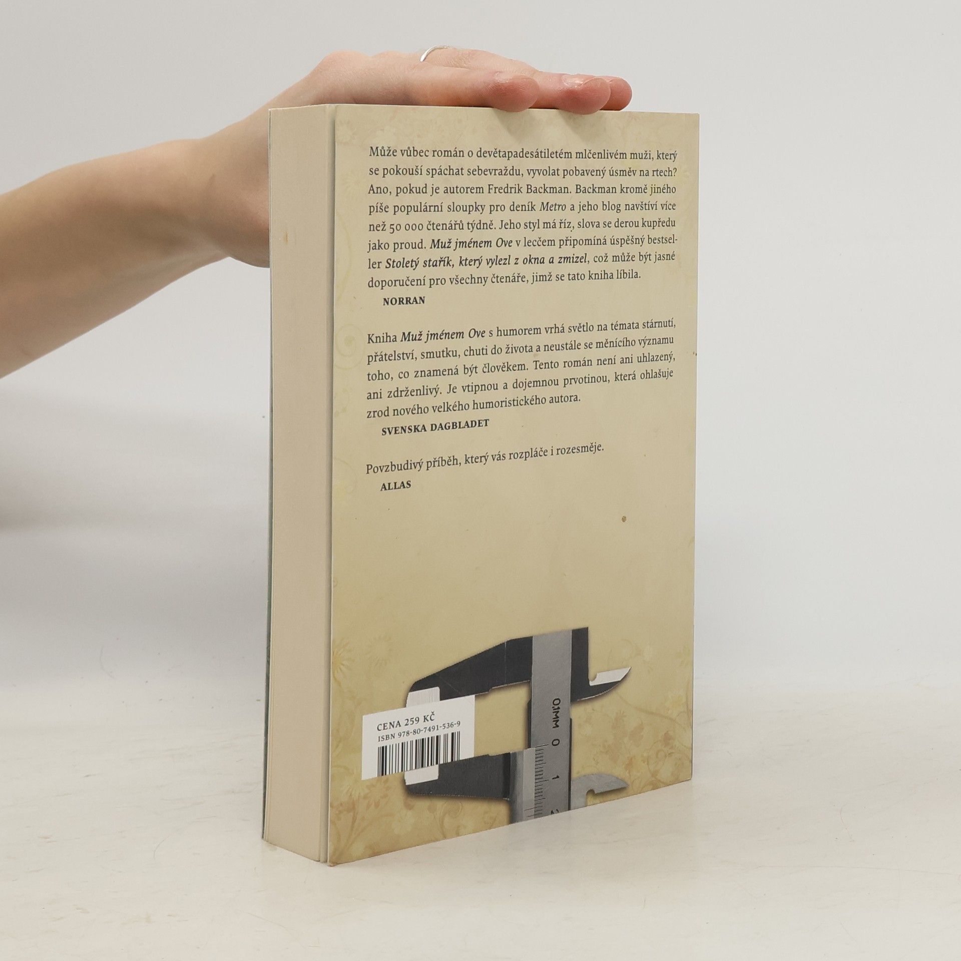 Román o lásce, pořádném nářadí a o tom, proč je důležité jezdit saabem. Ovemu je padesát devět let. Řídí saab. Na pozici předsedy družstva vlastníků byl sice vystřídán už před pár lety — což on sám považuje za převrat —, ale to mu rozhodně nebrání ve vykonávání funkce strážce pořádku. Samozvaného strážce pořádku. Když se do protějšího domku přistěhují noví sousedé a místo pozdravu se jim jen tak mimochodem podaří nacouvat do Oveho poštovní schránky, spustí se kolotoč nečekaných událostí — začíná příběh o překvapivém přátelství, toulavé kočce a prastarém umění řídit. A o tom, jak se změní životy lidí, kteří se s Ovem setkají.
