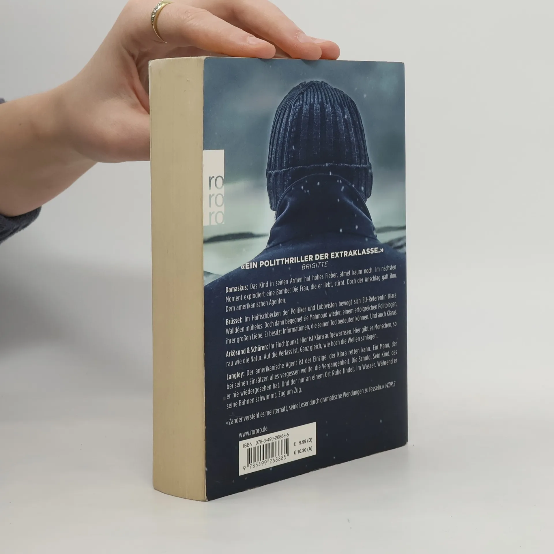 Damaskus: Das Kind in seinen Armen hat hohes Fieber, atmet kaum noch. Im nächsten Moment explodiert eine Bombe: Die Frau, die er liebt, stirbt. Doch der Anschlag galt ihm. Dem amerikanischen Agenten. Brüssel: Im Haifischbecken der Politiker und Lobbyisten bewegt sich EU-Referentin Klara Walldéen mühelos. Doch dann begegnet die junge Schwedin Mahmoud wieder, einem erfolgreichen Politologen, ihrer großen Liebe. Er besitzt Informationen, die seinen Tod bedeuten können. Und auch Klaras. Arkösund & Schären: Ihr Fluchtpunkt. Hier ist Klara aufgewachsen. Hier gibt es Menschen, so rau wie die Natur. Auf die Verlass ist. Ganz gleich, wie hoch die Wellen schlagen.Langley: Der amerikanische Agent ist der Einzige, der Klara retten kann. Ein Mann, der bei seinen Einsätzen alles vergessen wollte: Die Vergangenheit. Die Schuld. Sein Kind, das er nie wieder gesehen hat. Und der nur an einem Ort Ruhe findet. Im Wasser. Während er seine Bahnen schwimmt. Zug um Zug.