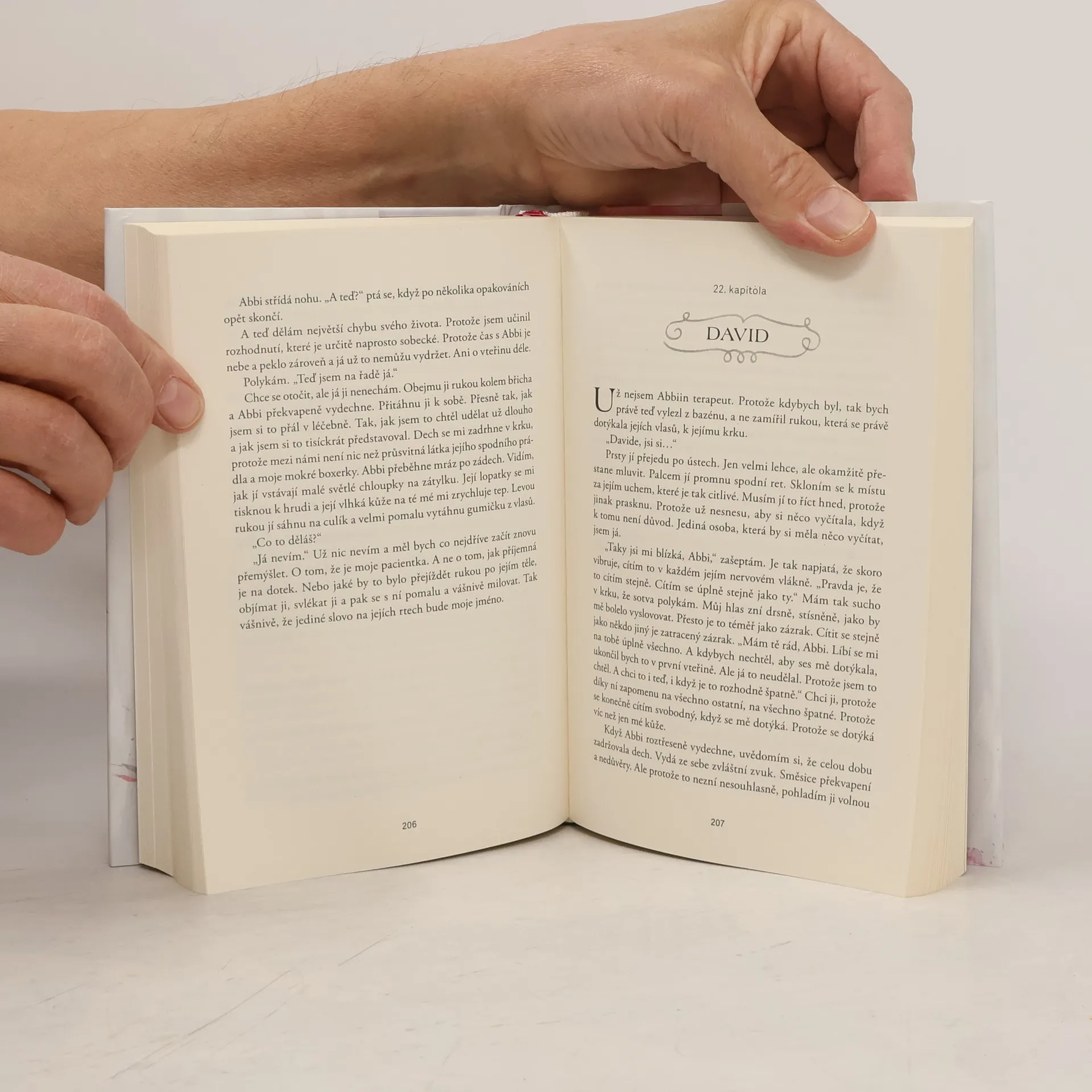 Láska vyžaduje odvahu! Zraněná. Vyděšená. Ztracená.Přesně tak se teď cítí Abbi, jednadvacetiletá dcera úspěšného amerického senátora.Měla všechno. Přítele, plány na dokončení studia a sny o vyvíjení nových typů přírodního papíru v otcově podniku... Teď však sní jen o jediném: chce se vrátit domů, pryč z rehabilitační kliniky, kde se musí po vážné autonehodě opět naučit chodit. Nedělá však žádné pokroky. Vůbec žádné. Od nehody a následné operace má Abbi panický strach z bolesti a terapie je pro ni naprosté peklo – dokud nenajde nového fyzioterapeuta.David Rivers je stále ještě student, ale svým trpělivým a laskavým přístupem překoná Abbiny zábrany. Kdykoli se jí dotkne, její strach mizí. Cítí se v bezpečí. Jenže není. David totiž zná tajemství, které by mohlo rozvrátit celý její svět...