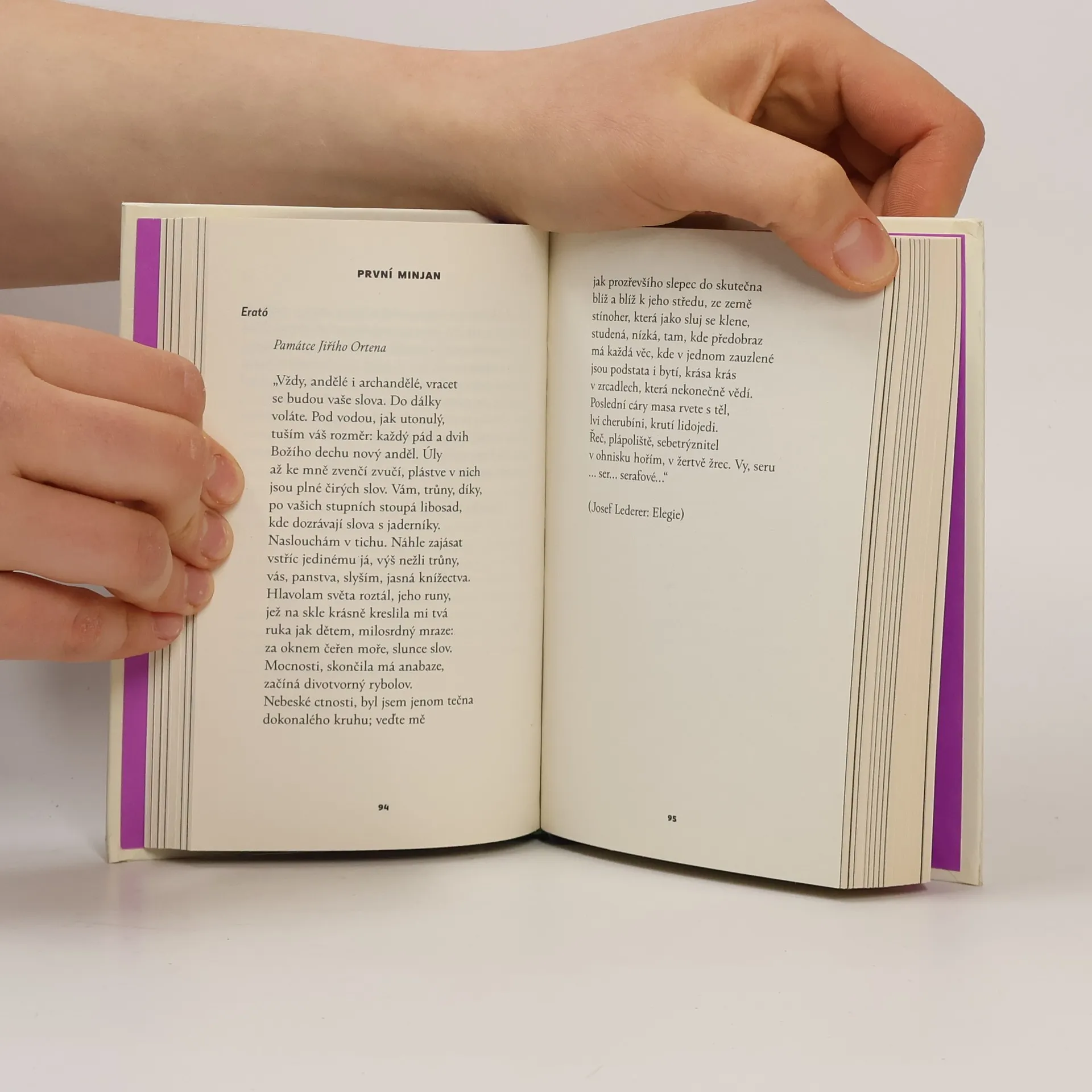 Jiří Langer a Jiří Orten představují dva póly židovství a češství, literatury a víry: Langer se z modernity vrací k chasidství, ale občas ho vykládá velemoderně. Orten se ze židovských tradic téměř vyvázal, ale pod tlakem blížícího se šoa se vrací k Písmu. Modlitby českožidovské jsou uspořádány podle liturgického roku judaismu: K jednotlivým svátkům jsou přirazeny modlitby ladící tématem či náladou. Dva modlitebníci jsou doplněni na dvojí „minjan“, modlitební desítku: V první znějí úryvky z děl dalších českožidovských autorů, od obrozence Kappera po Ortenovy druhy. Druhou desítku tvoří úryvky těch, kdo se s židovskou zbožností rozešli, a přece v nich pracuje – či těch, kteří k židovství rodem nepatřili, ale zamilovali si dům izraelský, jeho víru a poezii. To poslední platí i pro editora knihy, Martina C. Putnu.