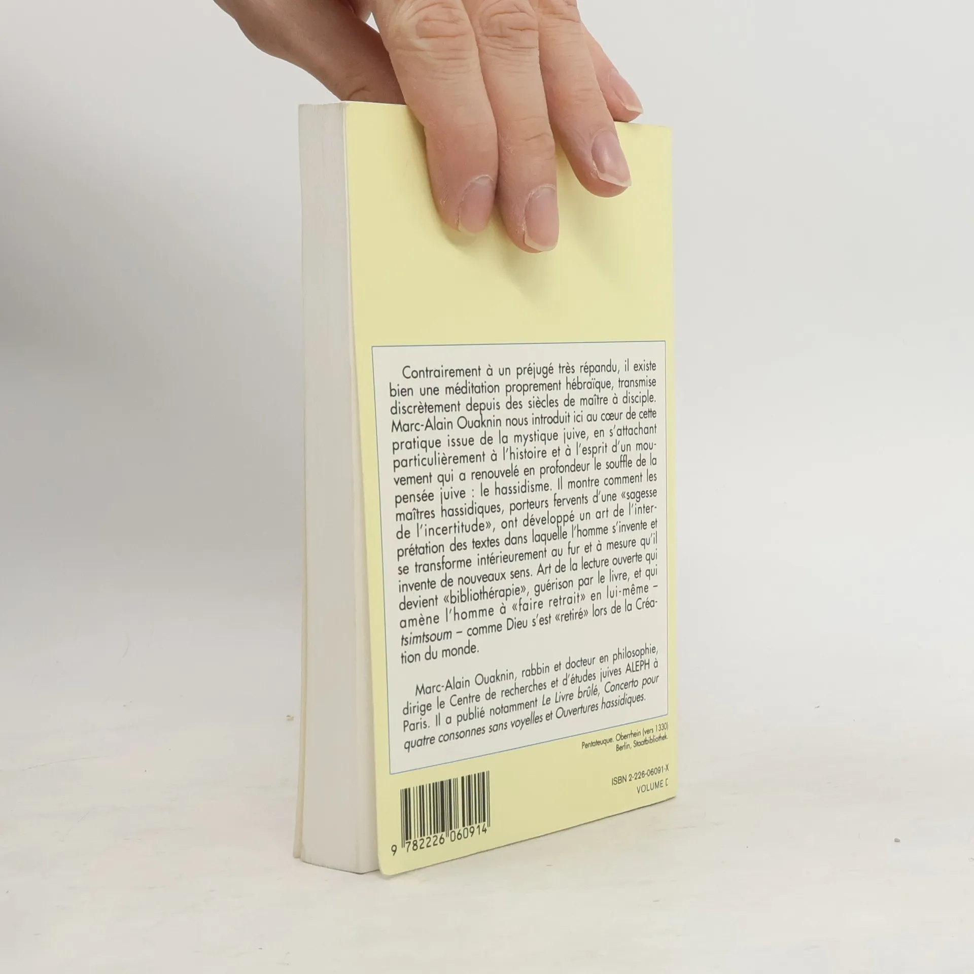 Contrairement à un préjugé très répandu, il existe bien une méditation proprement hébraïque, transmise discrètement depuis des siècles de maître à disciple. Marc-Alain Ouaknin nous introduit ici au coeur de cette pratique issue de la mystique juive, en s'attachant particulièrement à l'histoire et à l'esprit d'un mouvement qui a renouvelé en profondeur le souffle de la pensée juive : le hassidisme. II montre comment les maîtres hassidiques, porteurs fervents d'une «sagesse de l'incertitude», ont développé un art de l'interprétation des textes dans laquelle l'homme s'invente et se transforme intérieurement au fur et à mesure qu'il invente de nouveaux sens. Art de la lecture ouverte qui devient «bibliothérapie», guérison par le livre, et qui amène l'homme à «faire retrait» en lui-même — tsimtsoum — comme Dieu s'est «retiré» lors de la Création du monde.