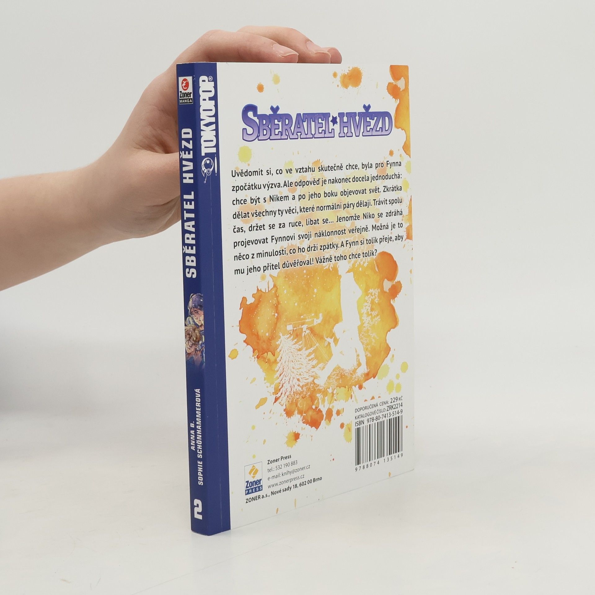 Sběratel hvězd (Star Collector) je japonská manga o lásce mezi dvěma chlapci, kteří si tu lásku musí obhájit nejenom před svým okolím, ale také sami před sebou. Něžný příběh o dospívání, poznávání sebe sama, objevování sexuality a hledání svého místave světě, který nám nemusí vždy dávat smysl, ale hlavně když v něm nejsme sami.Uvědomit si, co ve vztahu skutečně chce, byla pro Fynna zpočátku výzva. Obzvlášť po tom, co se sám tak dlouho ploužil od ničehok ničemu a mezi jeho hlavní záliby patřilo chození za školu, kouření a poflakování se po okolí.Teď už to ale ví jistě. Chce být s Nikem, s tím roztomilým nerdem, který tak rád pozoruje hvězdy. Fynn si nepřeje nic jiného než po jeho boku objevovat svět a dělat všechny ty věci, které normální páry dělají. Jako třeba trávit spolu čas, držet se za ruce, líbat se…Jenomže Niko je najednou odtažitý a zdráhá se projevovat Fynnovi svoji náklonnost veřejně. Možná má strach. Možná je to něco z jeho minulosti, co ho drží zpátky. A Fynn přitom nechce nic víc, než aby mu jeho přítel důvěřoval. Vážně toho chce tolik?