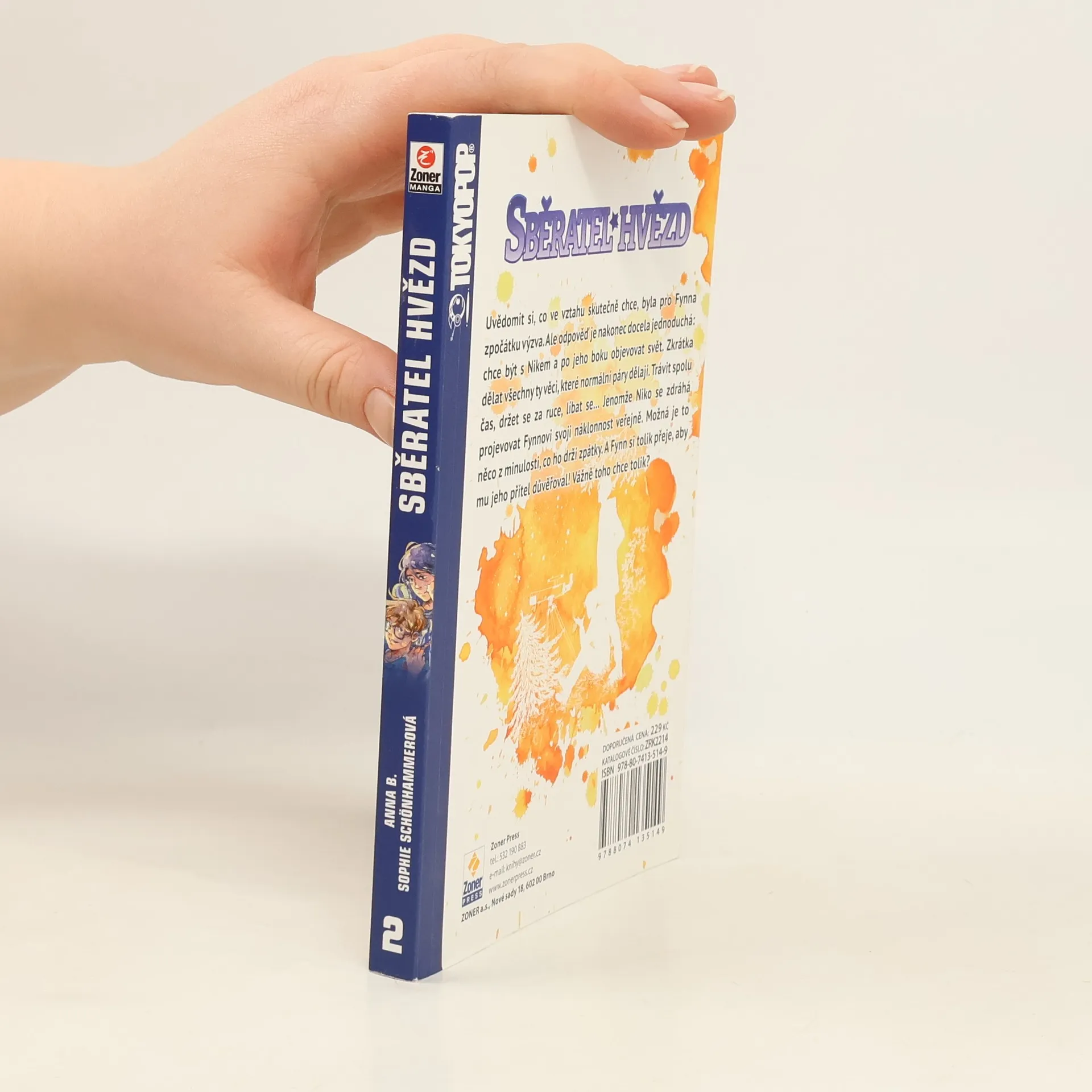 Sběratel hvězd (Star Collector) je japonská manga o lásce mezi dvěma chlapci, kteří si tu lásku musí obhájit nejenom před svým okolím, ale také sami před sebou. Něžný příběh o dospívání, poznávání sebe sama, objevování sexuality a hledání svého místave světě, který nám nemusí vždy dávat smysl, ale hlavně když v něm nejsme sami.Uvědomit si, co ve vztahu skutečně chce, byla pro Fynna zpočátku výzva. Obzvlášť po tom, co se sám tak dlouho ploužil od ničehok ničemu a mezi jeho hlavní záliby patřilo chození za školu, kouření a poflakování se po okolí.Teď už to ale ví jistě. Chce být s Nikem, s tím roztomilým nerdem, který tak rád pozoruje hvězdy. Fynn si nepřeje nic jiného než po jeho boku objevovat svět a dělat všechny ty věci, které normální páry dělají. Jako třeba trávit spolu čas, držet se za ruce, líbat se…Jenomže Niko je najednou odtažitý a zdráhá se projevovat Fynnovi svoji náklonnost veřejně. Možná má strach. Možná je to něco z jeho minulosti, co ho drží zpátky. A Fynn přitom nechce nic víc, než aby mu jeho přítel důvěřoval. Vážně toho chce tolik?