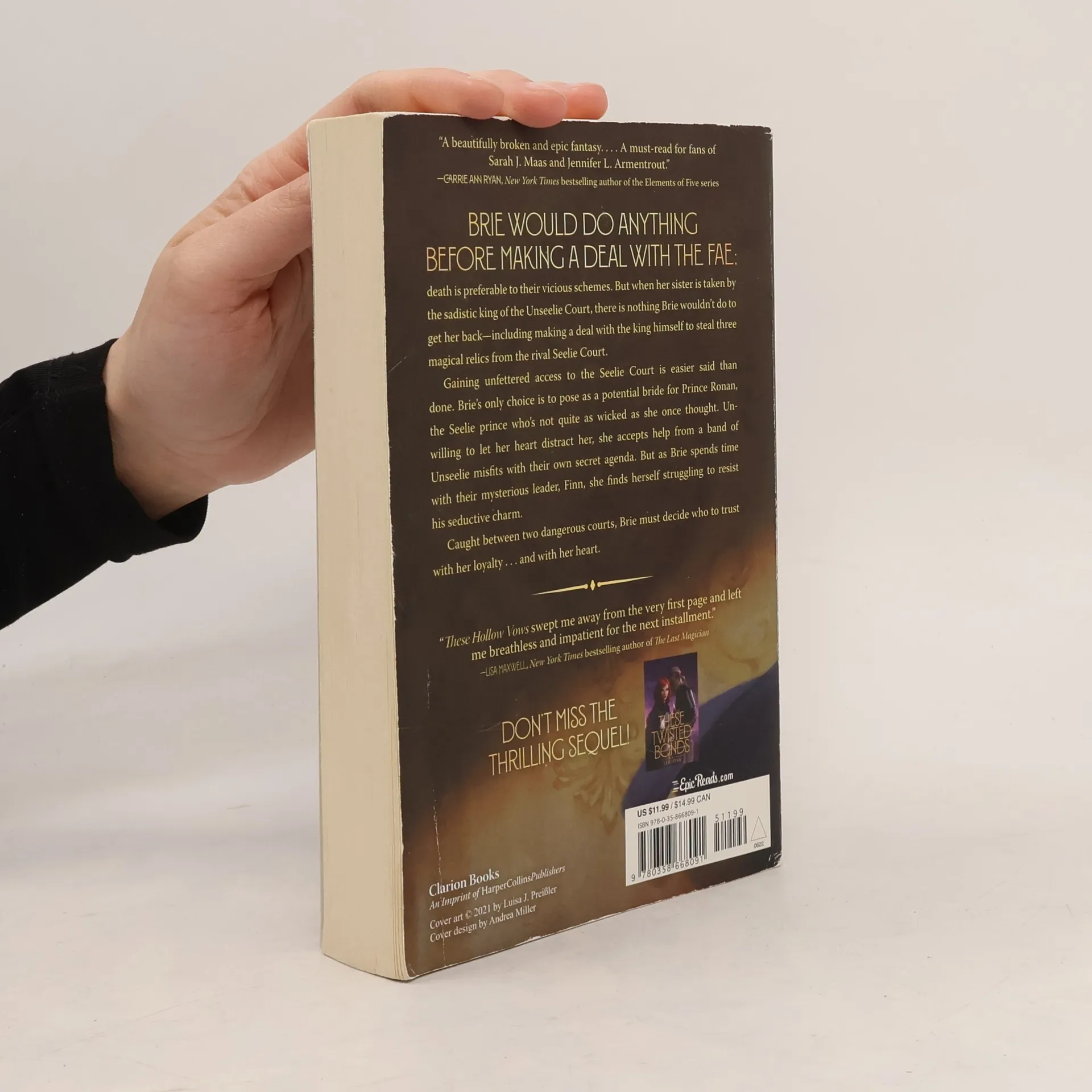 A New York Times Bestseller! Cruel Prince meets A Court of Thorns and Roses in this sexy, action-packed fantasy about a girl who is caught between two treacherous faerie courts and their dangerously seductive princes. Brie hates the Fae and refuses to have anything to do with them, even if that means starving on the street. But when her sister is sold to the sadistic king of the Unseelie court to pay a debt, she'll do whatever it takes to get her back--including making a deal with the king himself to steal three magical relics from the Seelie court. Gaining unfettered access to the Seelie court is easier said than done. Brie's only choice is to pose as a potential bride for Prince Ronan, and she soon finds herself falling for him. Unwilling to let her heart distract her, she accepts help from a band of Unseelie misfits with their own secret agenda. As Brie spends time with their mysterious leader, Finn, she struggles to resist his seductive charm. Caught between two dangerous courts, Brie must decide who to trust with her loyalty. And with her heart.