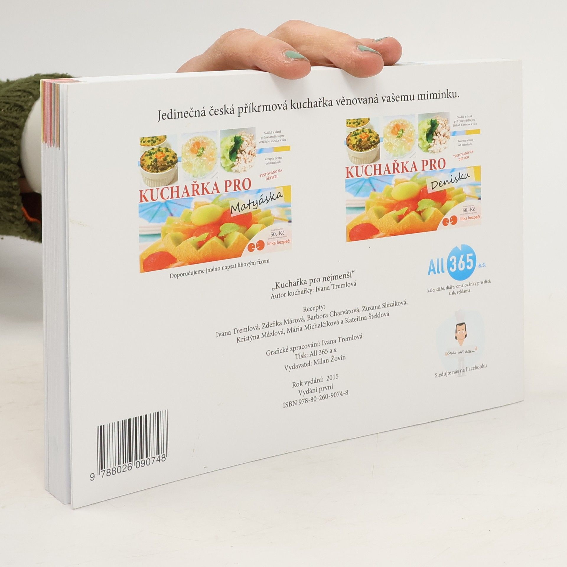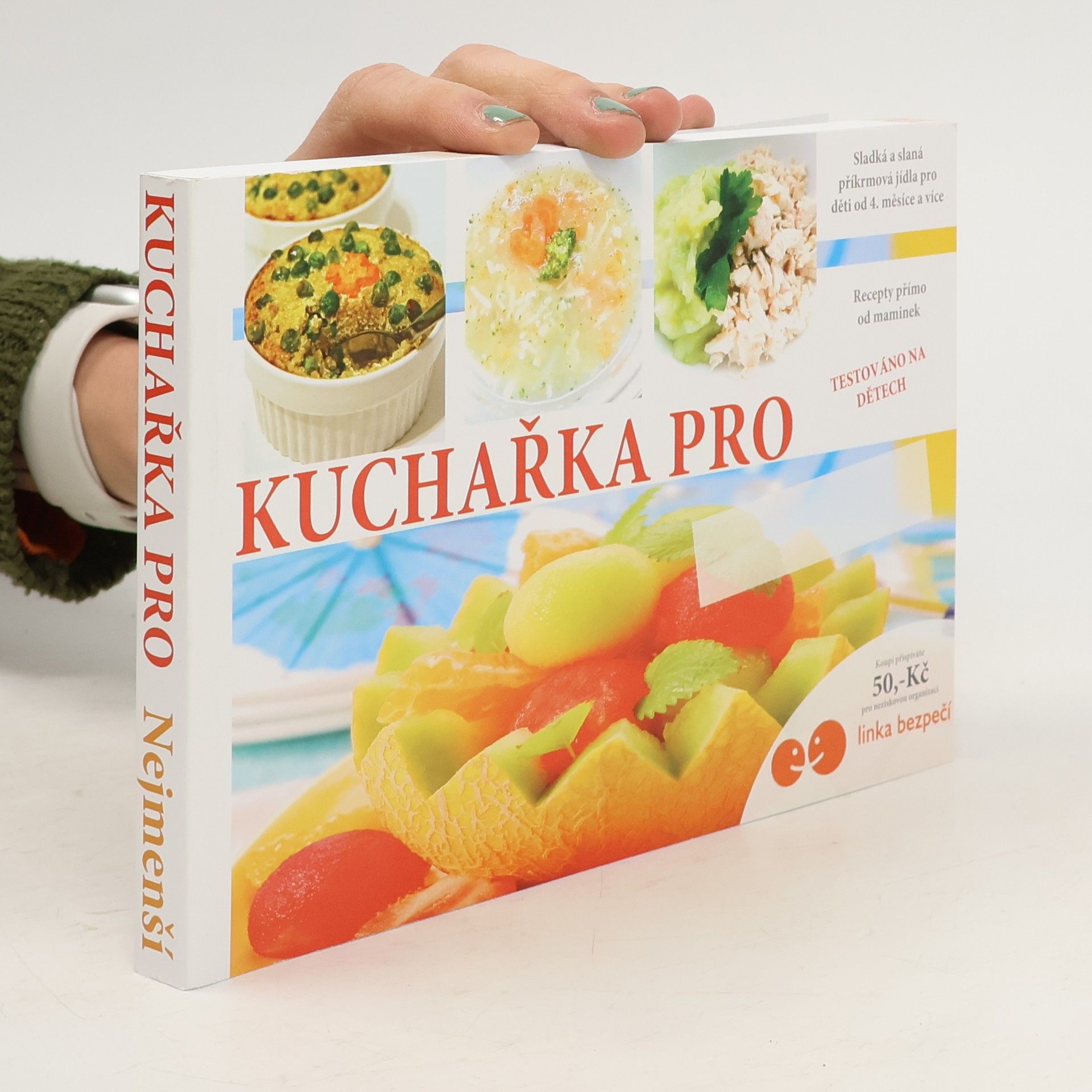 Tato kuchařka vznikla na základě spolupráce několika maminek, které zde ukazují, jak jednoduché a zároveň inspirativní může být vaření receptů pro ty nejmenší od ukončeného 4. měsíce. Kuchařka obsahuje 99+1 bonusový recept příkrmových jídel od 4 měsíce, kde začínáme kašičkami až do 2 let dítěte. Kniha je rozdělená věkově dle měsíců i barvami pro snadné vyhledávání. Veškeré recepty uvedené v kuchařce a jejich věkové zařazení je pouze orientační. Je vždy na zvážení každé maminky, kdy svému dítku to či ono příkrmové jídlo uvaří. Jedinečnost této kuchařky je v možnosti umístění vlastní fotografie na titulní stránku včetně věnování konkrétnímu miminku. Navíc zakupením podporujete Linku bezpečí v hodnotě 50,-Kč z ceny. Ta řeší dětskou problematiku každý den a pomáhá tak velkému množství dětí v celé naší republice. Navíc je tato kuchařka podpořená i on-line projektem o vaření na sociální síti Facebook pod názvem "Česko vaří Dětem.