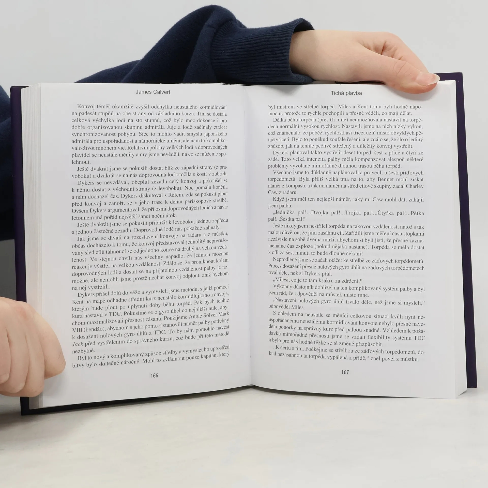 James Calvert zahájil svou kariéru v americkém ponorkovém loďstvu po dokončení námořní akademie v Annapolisu. V roce 1943 byl přidělen na ponorku USS Jack jako námořní poručík a stal se špičkovým operátorem zaměřování torpéd. S ponorkou Jack absolvoval osm bojových plaveb v Tichomoří, kde její posádka potopila patnáct japonských lodí, což ji na konci války zařadilo mezi devět nejúspěšnějších ponorek podle potopené tonáže. Autor detailně popisuje ponorkové operace proti Japoncům, včetně pronásledování tankerů a transportních lodí. Velitel jednoho konvoje, který Jack napadl, poslal zprávu do Tokia o „smečce“ ponorek. Kromě bojových taktik se čtenář dozví také o technických aspektech ovládání ponorek, včetně problémů s nespolehlivými torpédy. Po válce byl přeložen na USS Haddo, kde absolvoval svou poslední bojovou operaci. Calvert vzpomíná i na zážitky na pevnině, včetně nedokončeného flirtu s Australankou. Jeho vzpomínky vrcholí nepovolenou cestou do Tokia po kapitulaci Japonska, která ohrozila jeho kariéru. Calvert byl jedním z nejvíce vyznamenaných důstojníků amerického námořnictva ve druhé světové válce a po válce velel jaderné ponorce, působil jako náčelník námořní akademie a nakonec jako velitel 1. floty v Tichomoří. Do zálohy odešel jako viceadmirál.