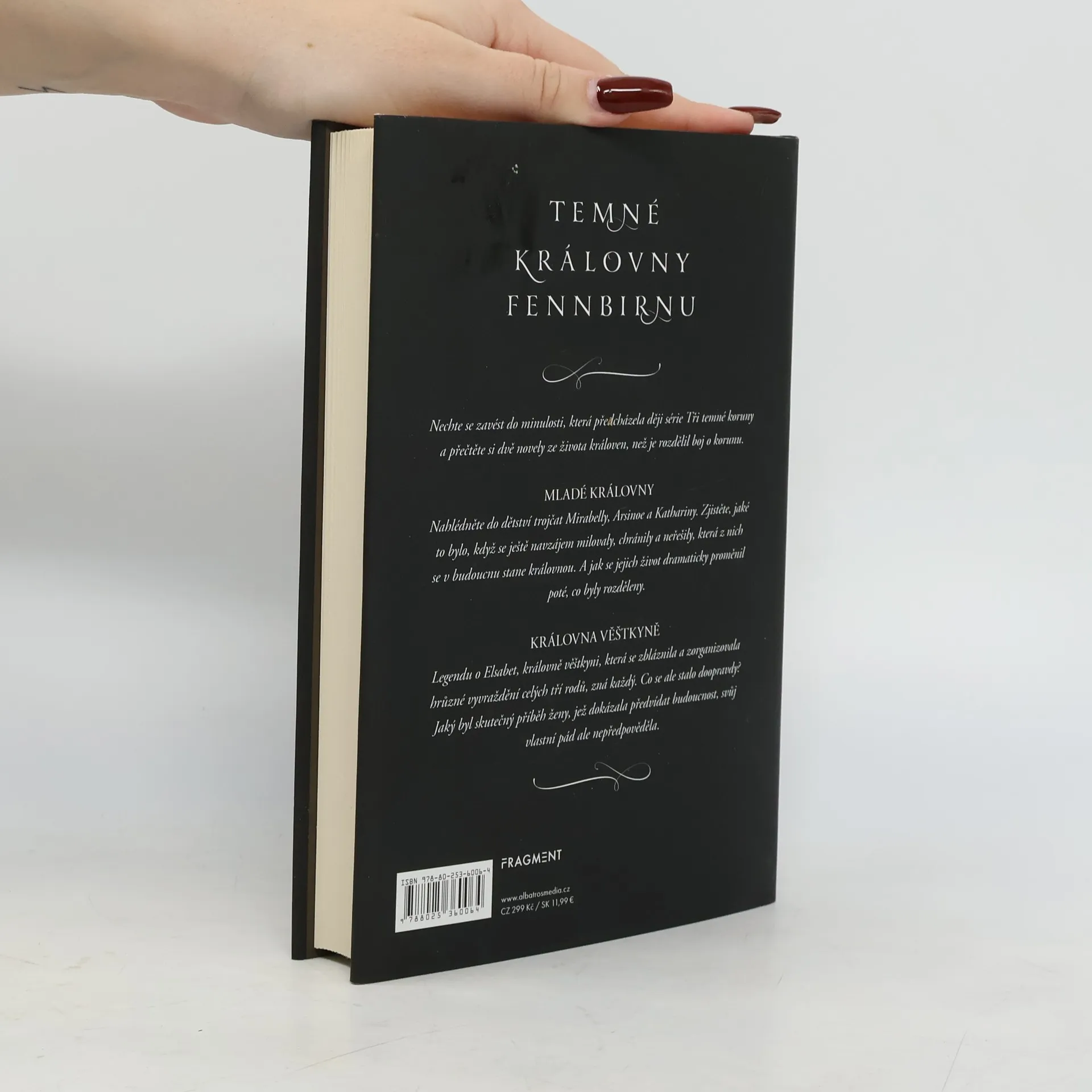 Přečtěte si novely ze života královen, než je rozdělil boj o korunu. V první novele nahlédnete do dětství trojčat Mirabelly, Arsinoe a Kathariny. Jaké to bylo, když se ještě navzájem milovaly a chránily? Druhá novela vypráví o Elsabet, královně věštkyni, která se zbláznila a zorganizovala hrůzné vyvraždění celých tří rodů. Co se ale stalo doopravdy? Jaký byl skutečný příběh ženy, jež dokázala předvídat budoucnost, svůj vlastní pád ale nepředpověděla.Nechte se zavést do minulosti, která předcházela ději série Tři temné koruny a přečtěte si dvě novely ze života královen, než je rozdělil boj o korunu.