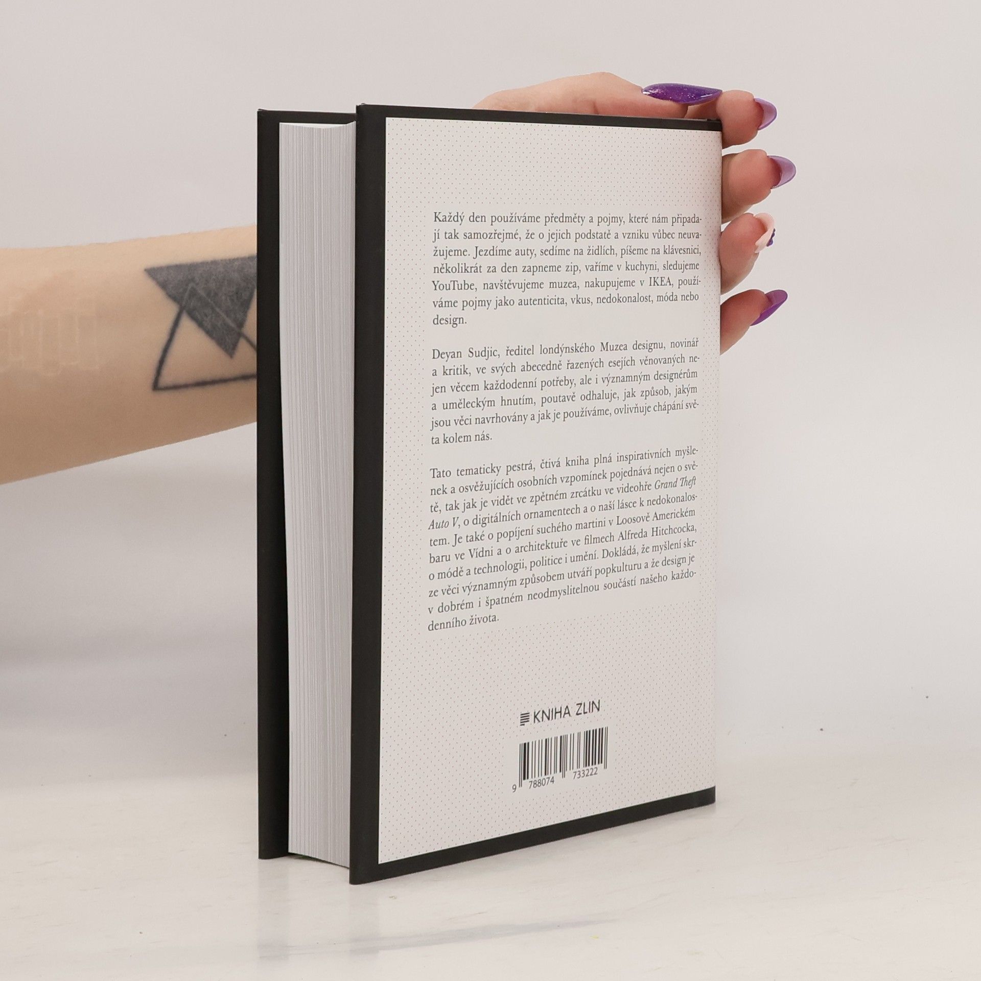 Tato kniha není slovník, ačkoli se z ní dozvíte informace o všem od autenticity až po zipy. Není to ani autobiografie, třebaže předkládá zevrubný a vysoce osobní odborný názor na současnou kulturu. Je to nepostradatelný nástroj, který čtenáři pomůže lépe porozumět modernímu světu. V této knize se píše o tom, co z díla Andyho Warhola dělá pravý padělek, o vzniku národních identit nebo o sběratelské mánii. Pojednává o světě, tak jak je vidět ze zpětného zrcátka ve videohře Grand Theft Auto V, o digitálních ornamentech a o naší lásce k nedokonalostem. Je o popíjení suchého martini ve vídeňském podniku Adolfa Loose American Bar a o architektuře ve filmech Alfreda Hitchcocka, o módě a technologii, politice a umění.