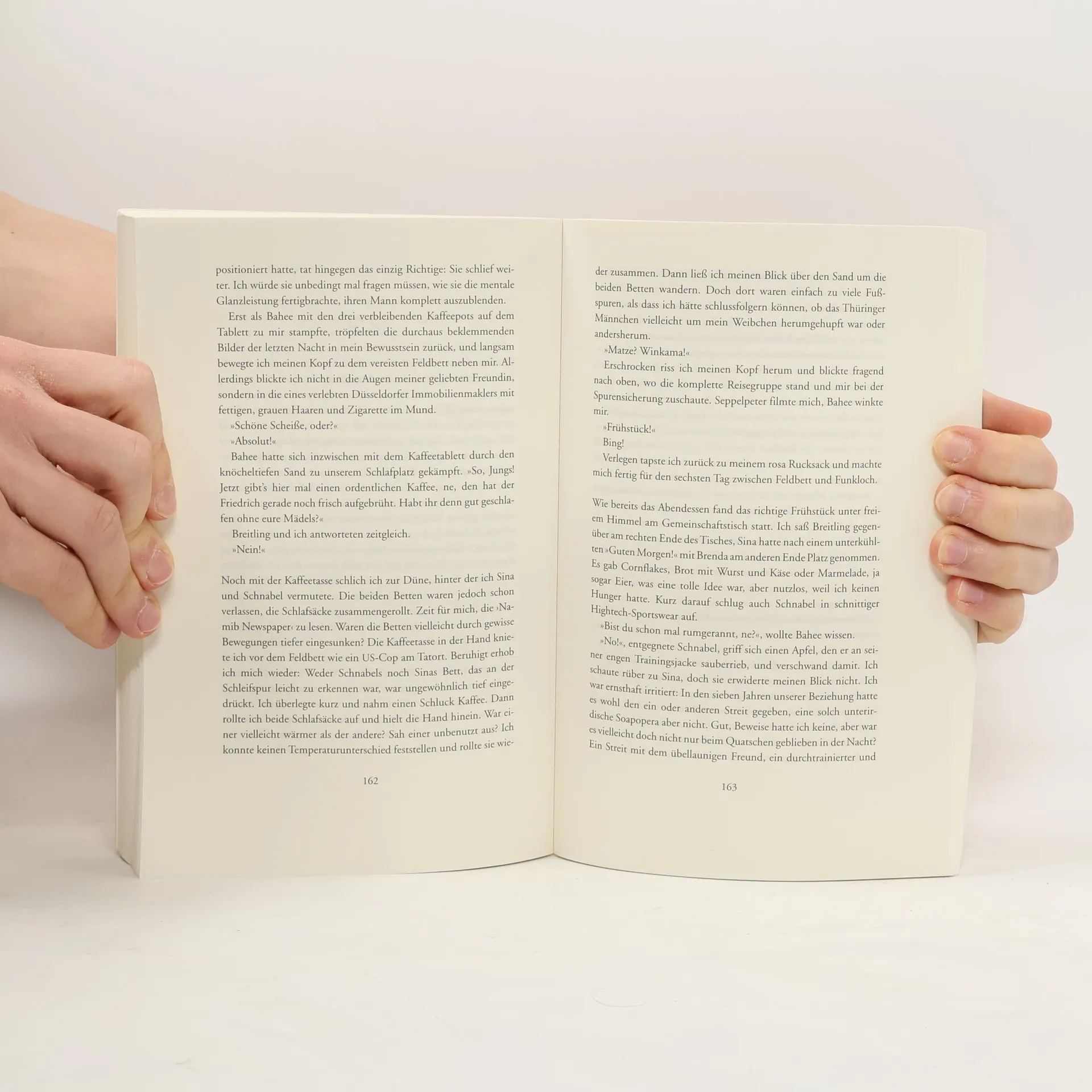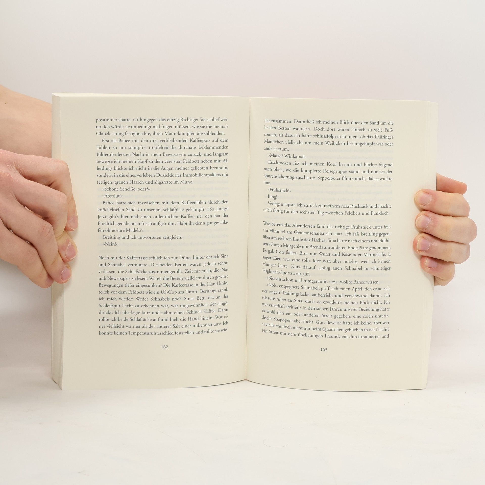 Sitzreihe 12 war die letzte, die zwischen Tortellini und Hühnchen wählen durfte. Ich saß in Reihe 13. Schon auf dem Hinflug hätte mir klar sein können, dass der Jahresurlaub zum Albtraum wird. Matze sieht die Schuld für sein Dilemma bei seiner Freundin Sina. Während er die neue Eigentumswohnung klargemacht hat, buchte sie einfach 'irgendwas' – eine zweiwöchige Gruppenreise durch Namibia. Ein Land, in dem selbst eine hüftkranke Schildkröte schneller ist als das Internet. Täglich wird er in einen Kleinbus voller skurriler Mitreisender gesperrt, während er sich durch österreichische Schlager über afrikanische Schotterpisten rütteln lässt. Statt auf Mallorca ein Bier zu genießen, kämpft er bei minus zwei Grad in einem lächerlichen Wanderhut durch die Dünen der Kalahari. Als ihm klar wird, dass die Wohnung an andere Käufer geht, wenn er nicht sofort die Reservierungsgebühr überweist, hat er gleich drei neue Probleme: Das nächste Internetcafé ist fünfhundert Kilometer entfernt, sein Handy ist leer und das einzige Ladegerät gehört einem österreichischen Mitreisenden. Er drückt seine Nase ans Busfenster und blickt hinaus ins weite Land. Die Namibier winken und lachen. Klar lachen sie, sie sind ja frei. Wir nicht. Wir sind die in Blech gepackte Rache für die deutsche Kolonialzeit.