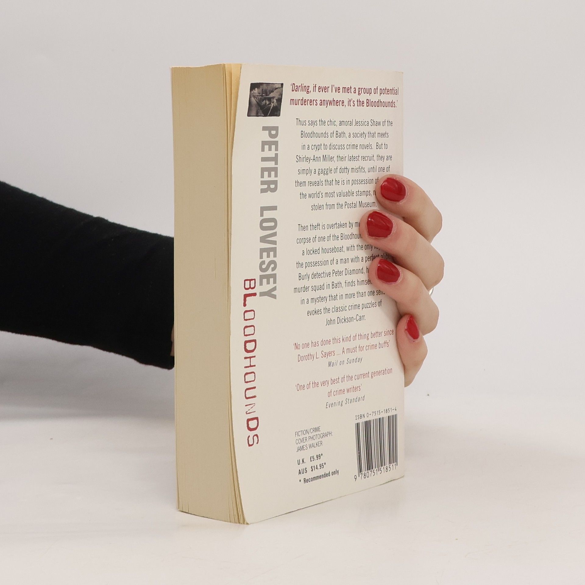 The Bloodhounds of Bath is a society that meets in a crypt to discuss crime novels. To their latest recruit they are simply a gaggle of dotty misfits, until one of them reveals that he is in possession of one of the world's most valuable stamps, recently stonlen from the Postal Museum. Then theft is overtaken by murder when the corpse of one of the Bloodhounds is found in a locked houseboat, with the only key in the possession of a man with a perfect alibi. Burly detective Peter Diamond, head of the murder squad in Bath, finds himself embroiled in a mystery that in more than one sense evokes the classic crime puzzles of John Dickson Carr.