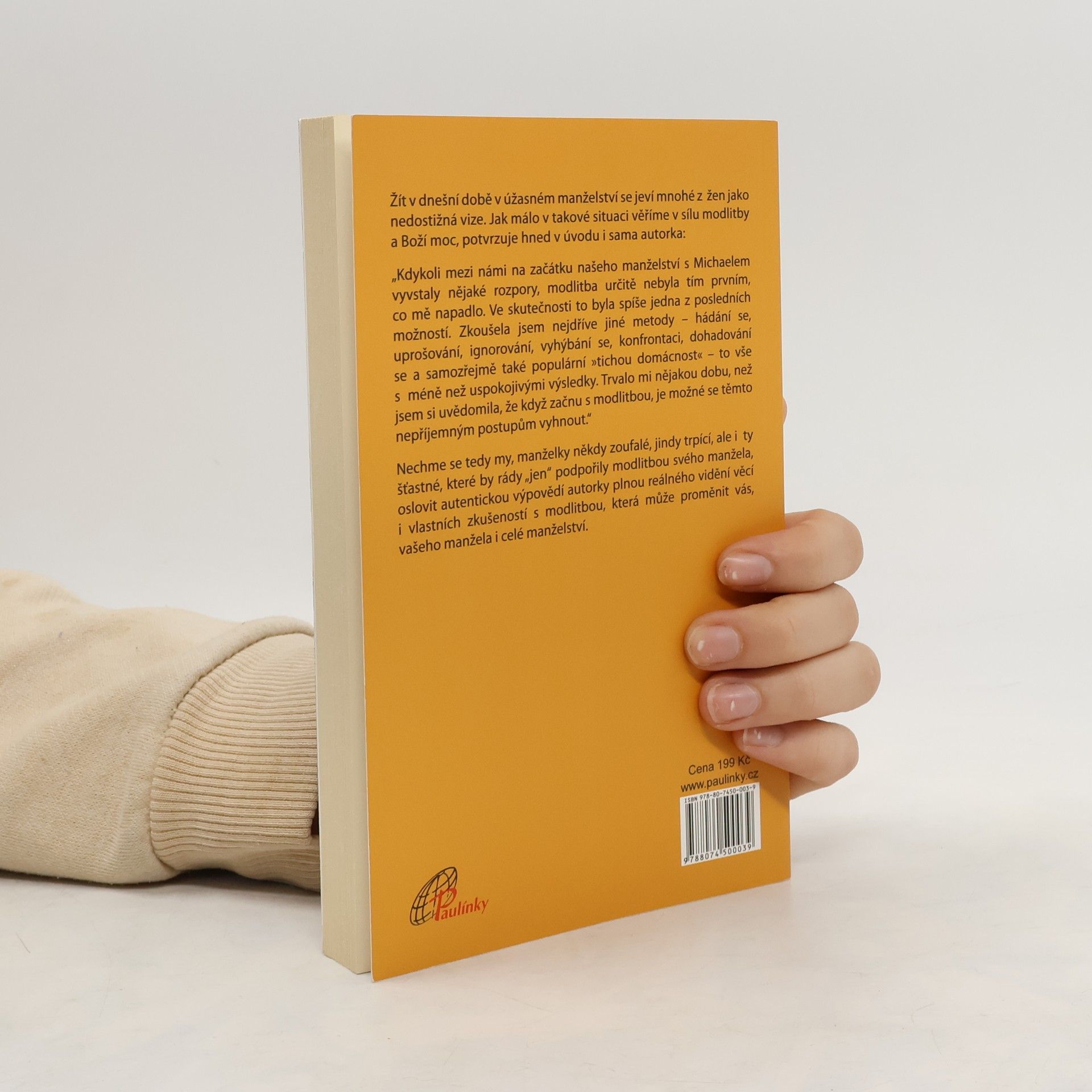 Žít v dnešní době v úžasném manželství se jeví mnohé z žen jako nedostižná vize. Jak málo v takové věci věří v sílu modlitby a Boží moc. Autorka zkoušela řešit své problémy v manželství různými metodami – hádáním se, uprošováním, ignorováním, vyhýbáním se, konfrontací, dohadováním se a také populární »tichou domácností«.Trvalo jí, než si uvědomila, že je třeba začít s modlitbou. Nechme se tedy my, manželky někdy zoufalé, jindy trpící, ale i ty šťastné, které by rády „jen“ podpořily modlitbou svého manžela, oslovit autentickou výpovědí autorky plnou reálného vidění věcí i vlastních zkušeností s modlitbou, která může proměnit vás, vašeho manžela i celé manželství.